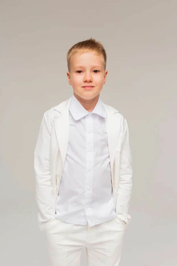 Купить жакет детский для мальчика трикотажный / пиджак школьный / в школу на праздник / белый 98