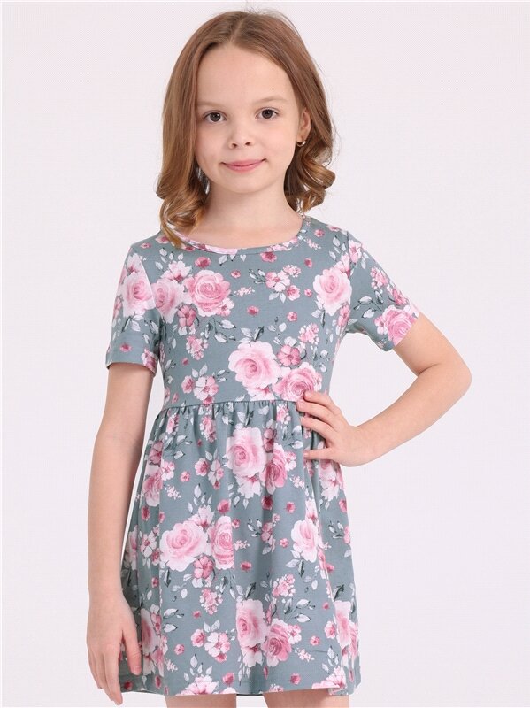 Платье для девочки нарядное летнее трикотажное хлопок 100% Апрель 1ДПК3999001н/243/*/1971/*/*/*/* розовый,серый,белый 76-146