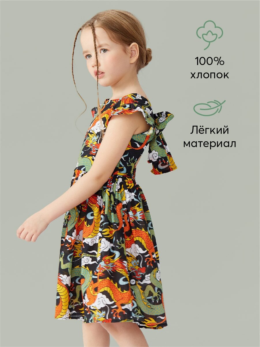 88158, Платье детское Happy Baby, из хлопка, с пышной юбкой, черное с драконом, размер 110-116