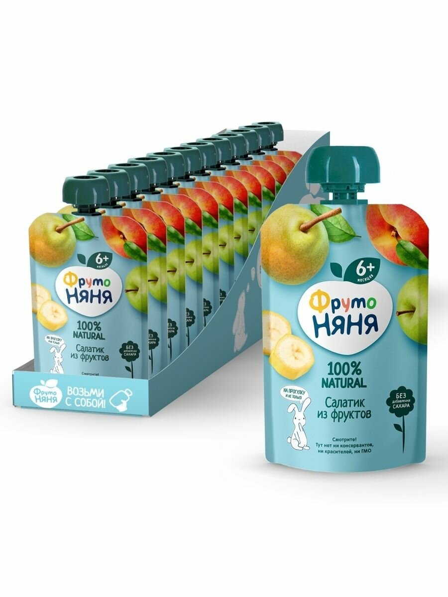 Пюре фруктовое ФрутоНяня с 6 месяцев, салатик из фруктов, 90 г, 12 шт