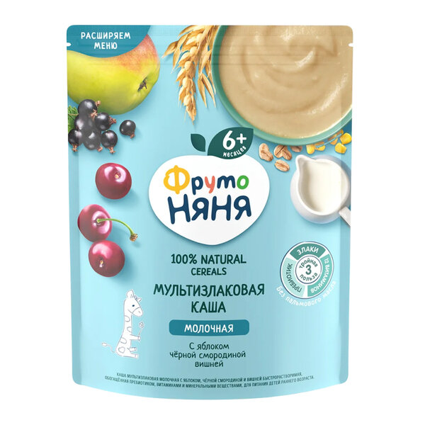 Каша молочная ФрутоНяня мультизлаковая, яблоко, черная смородина, вишня, 200г., 1шт интересное:
