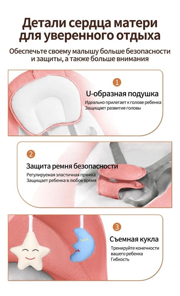 СохранитьЭлектронные качели шезлонг 3в 1 Dearest Pro Max Deluxe Pink - для безопасного и комфортного сна вашего малыша! интересное: