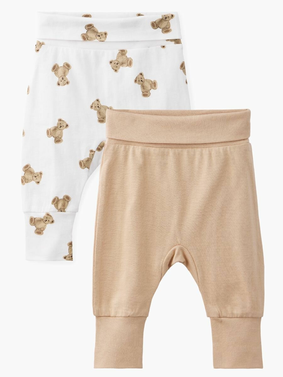 Купить 90113, Ползунки (штанишки) для новорожденных Happy Baby, для мальчика, девочки набор 2 шт, бежевые с мишками и коричневые, рост 68