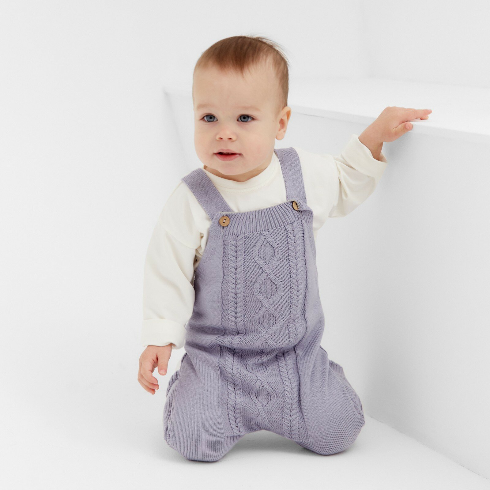 Комбинезон детский вязаный MINAKU, рост 80-86, цвет серо-голубой