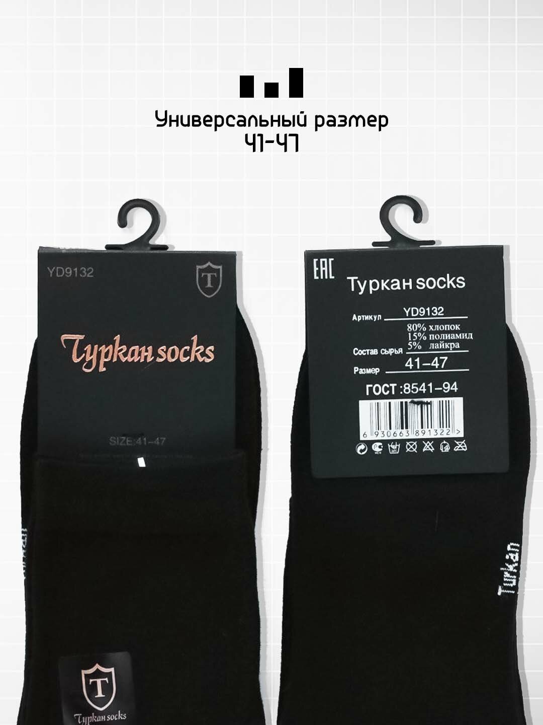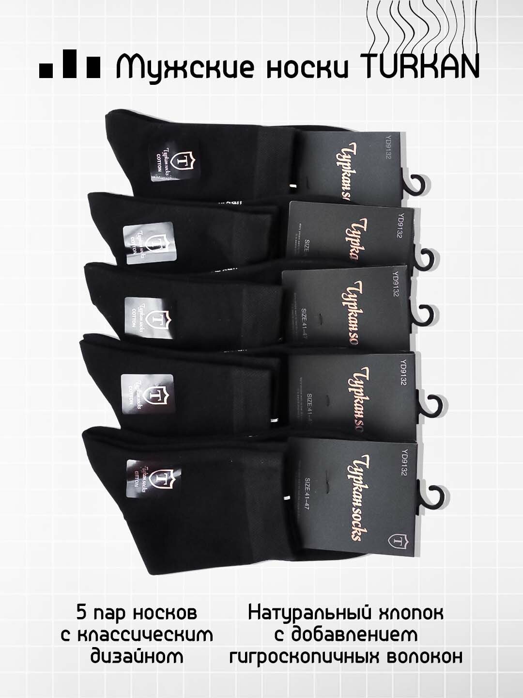 Носки мужские хлопковые Туркан чёрного цвета, набор 5 пар, премиум интересное: