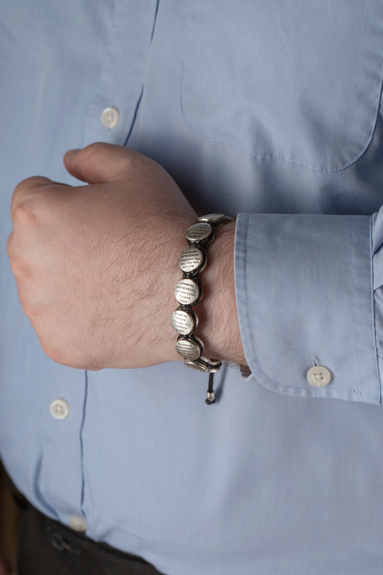 Браслет на руку плетеный с гравировкой молитвы "Отче Наш"