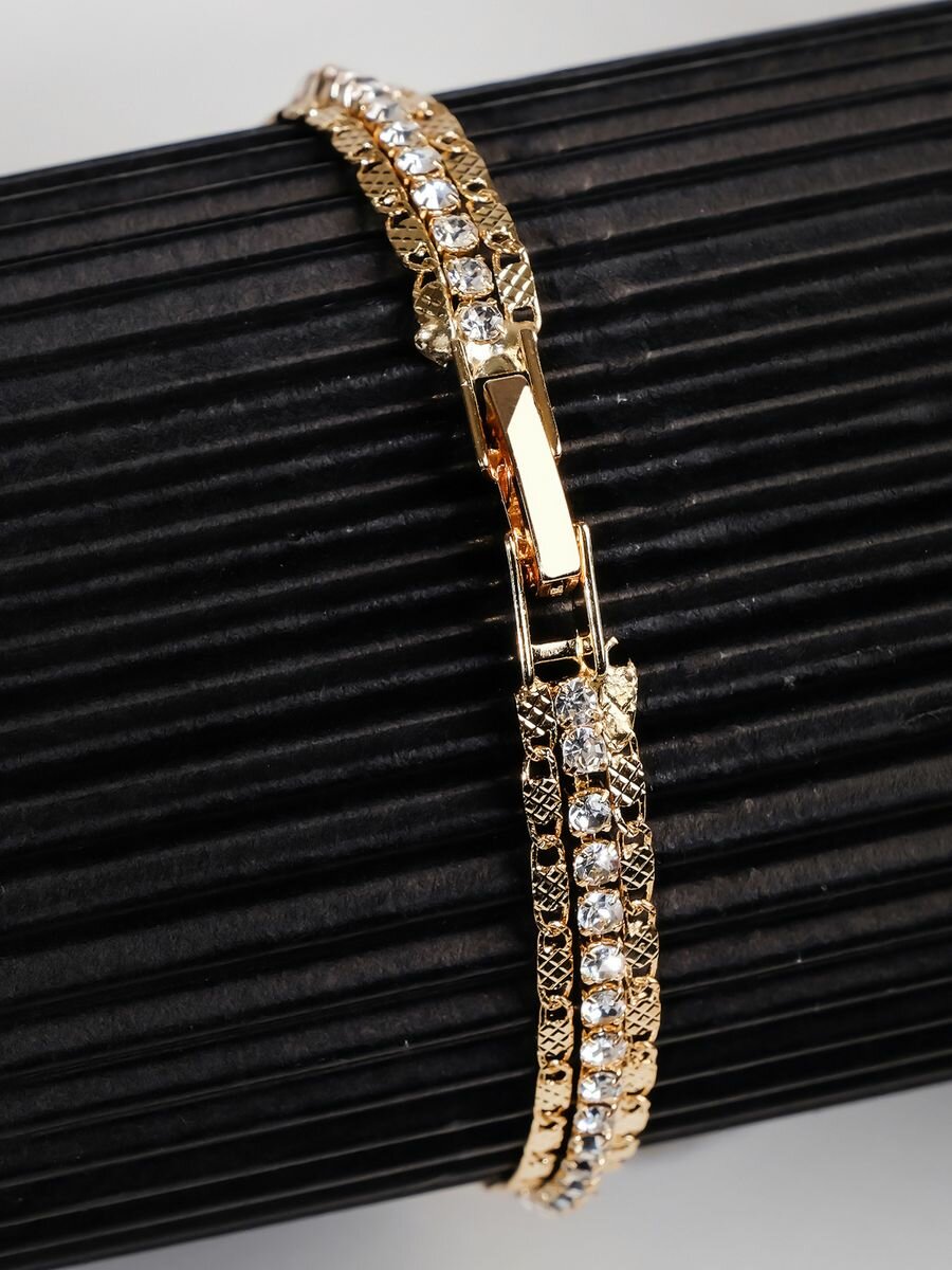 Купить Браслет со стразами "Сияй" нить пластинами, цвет белый в розовом золоте ,L-18см