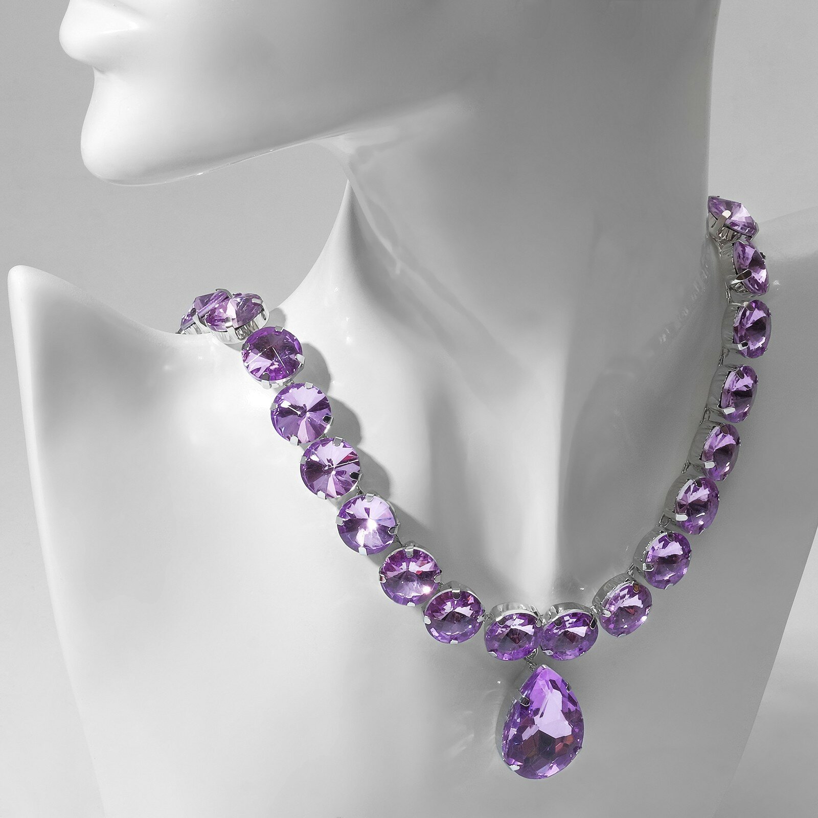 Колье "Драгоценность" капля, цвет сиреневый в серебре, 34 см 7992655 интересное: