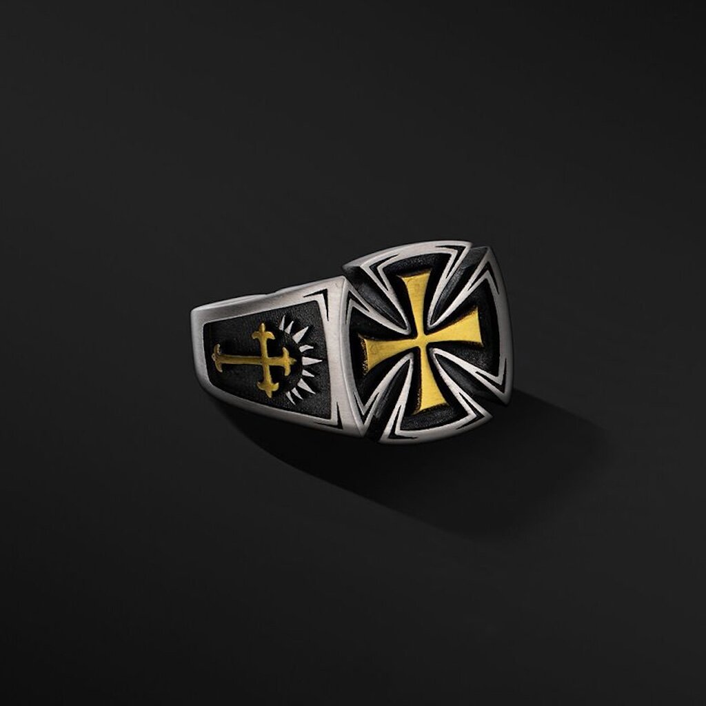 Мужское кольцо Green crystal с крестом без размера