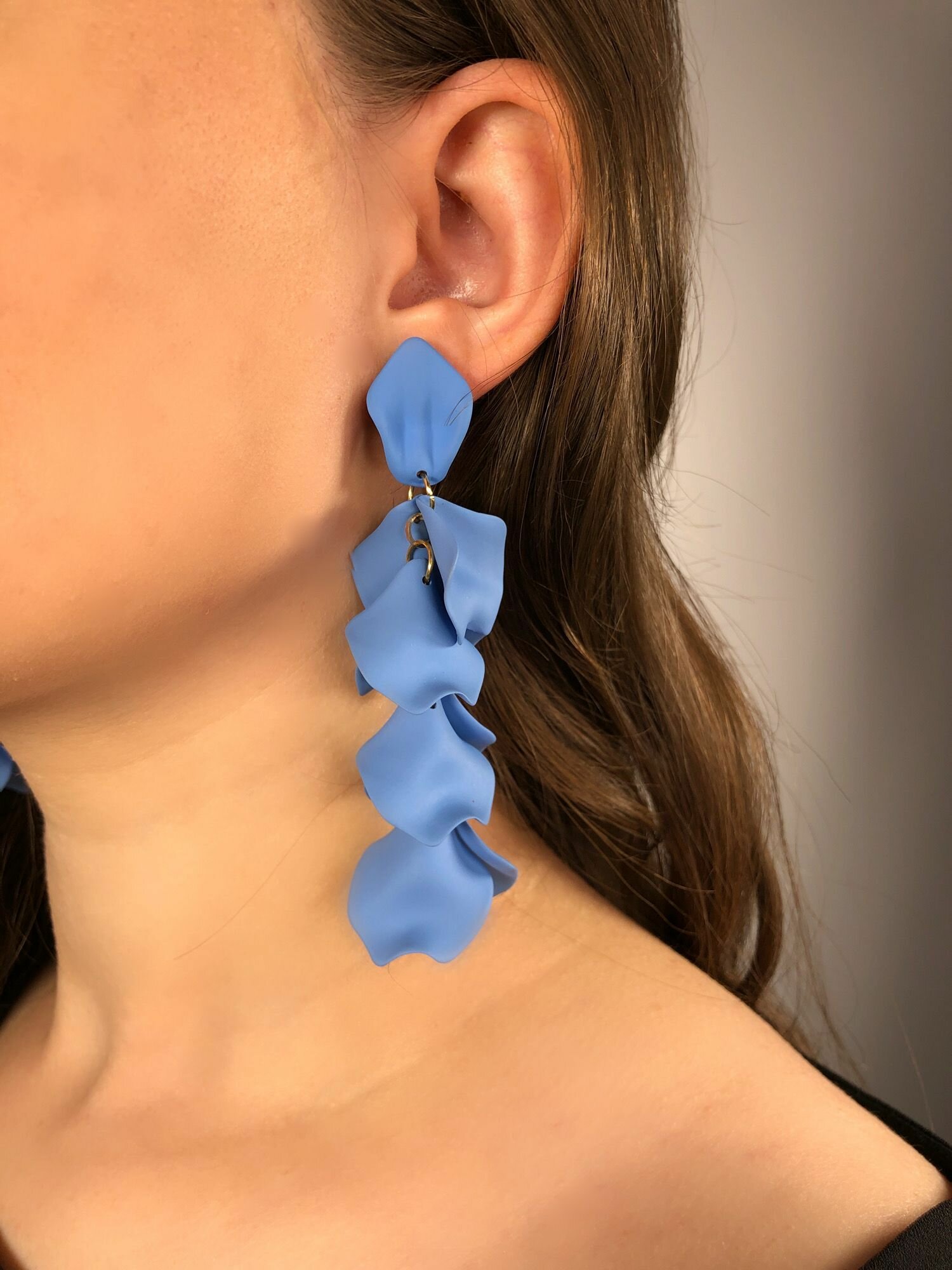 Серьги лепестки темно-синие перелив длинные женские стильные сережки тренд 2024