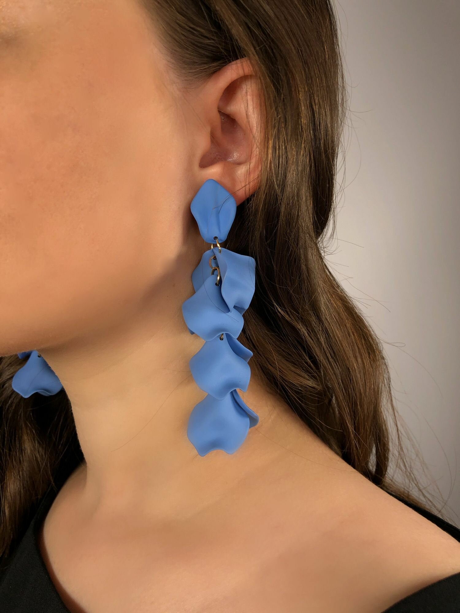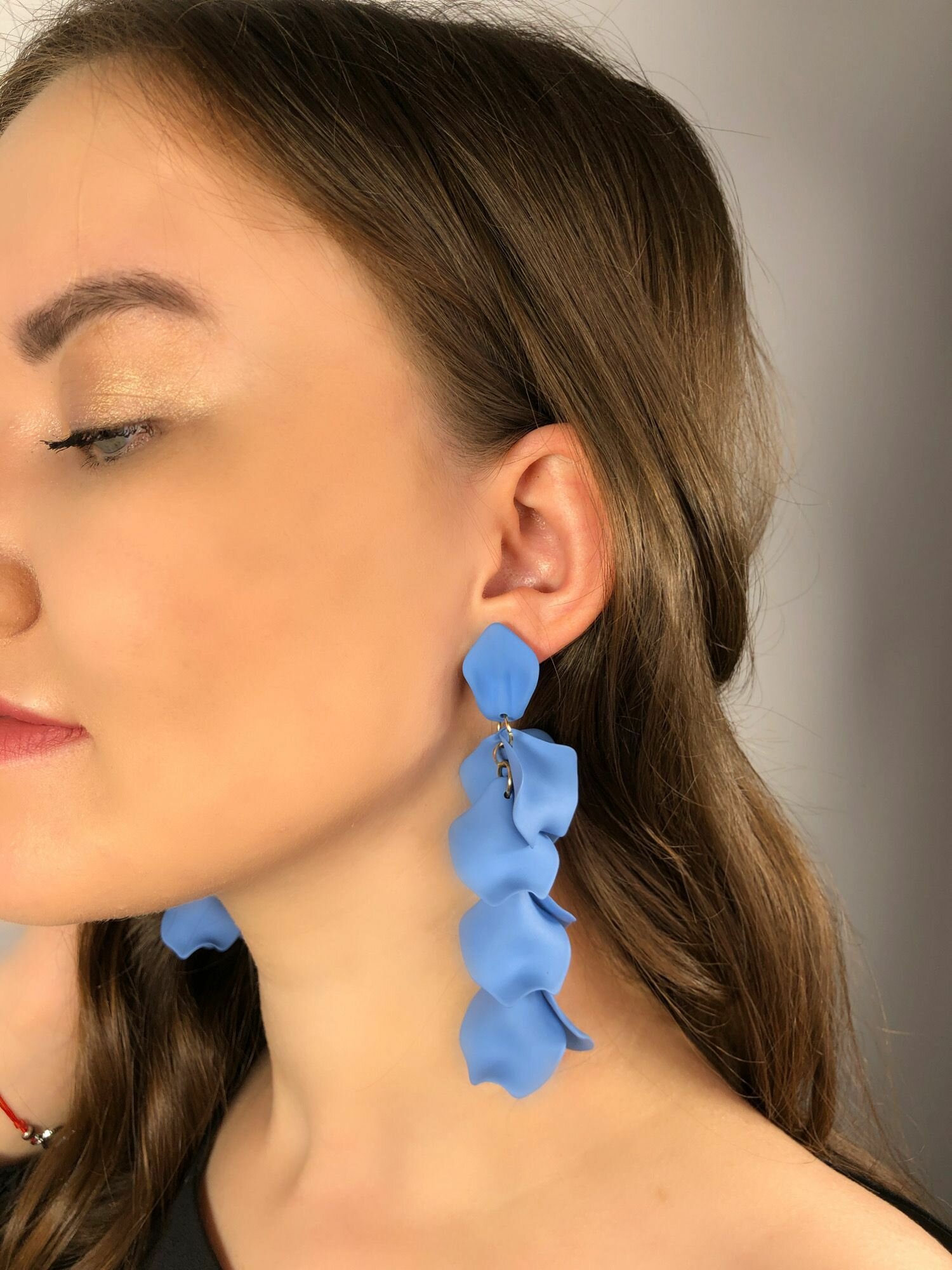 СохранитьСерьги длинные висячие вечерние женские стильные голубые сережки тренд 2024 интересное: