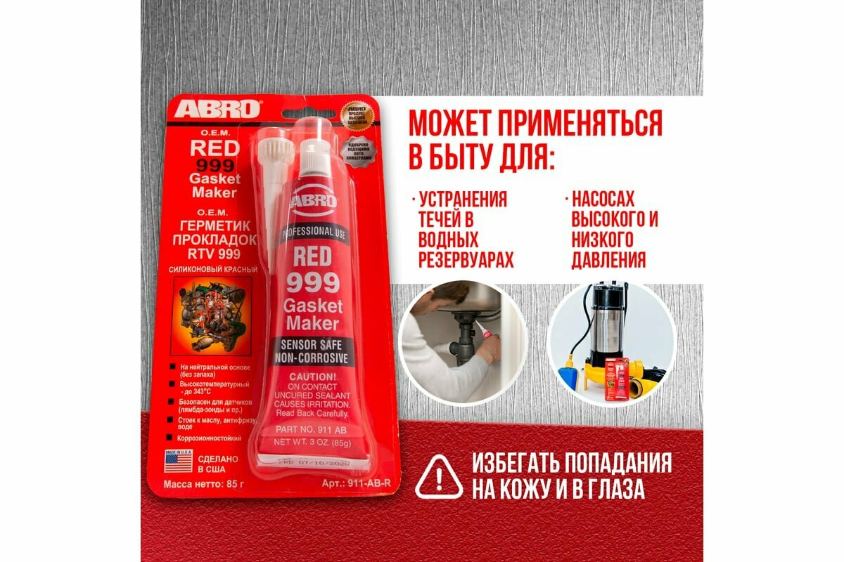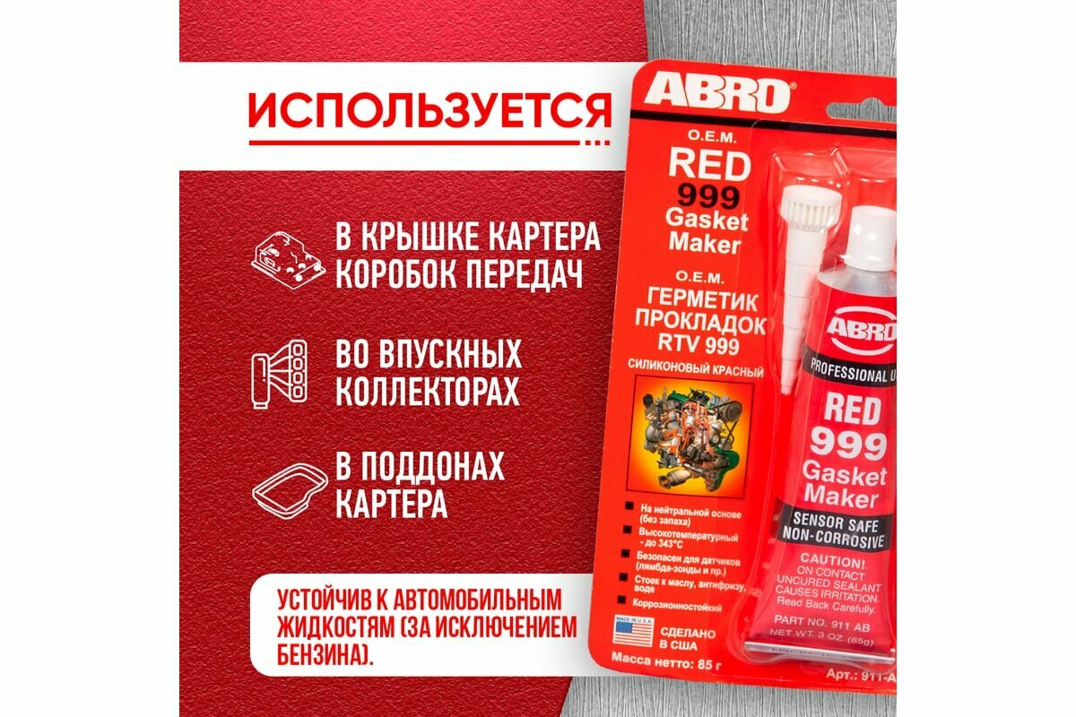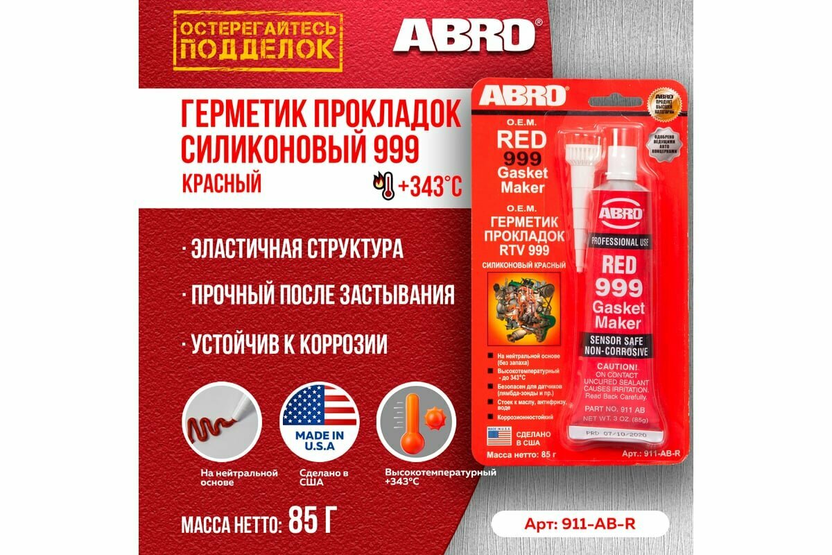 Герметик - прокладка 999 силиконовый OEM (красный) 85 г ABRO, 911ABR ABRO 911-AB-R интересное: