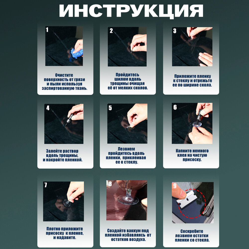 Набор для ремонта трещин и сколов на лобовом стекле