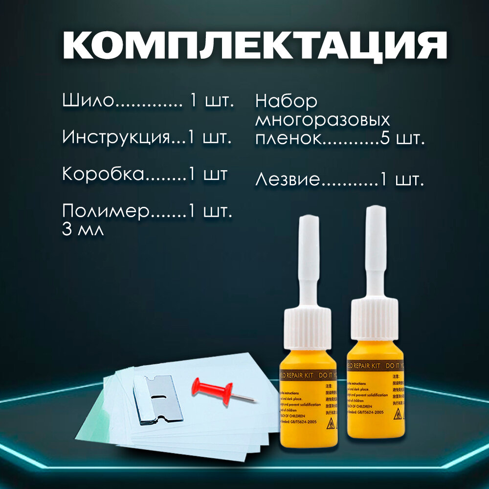 Набор для устранения сколов и трещин на лобовом стекле авто