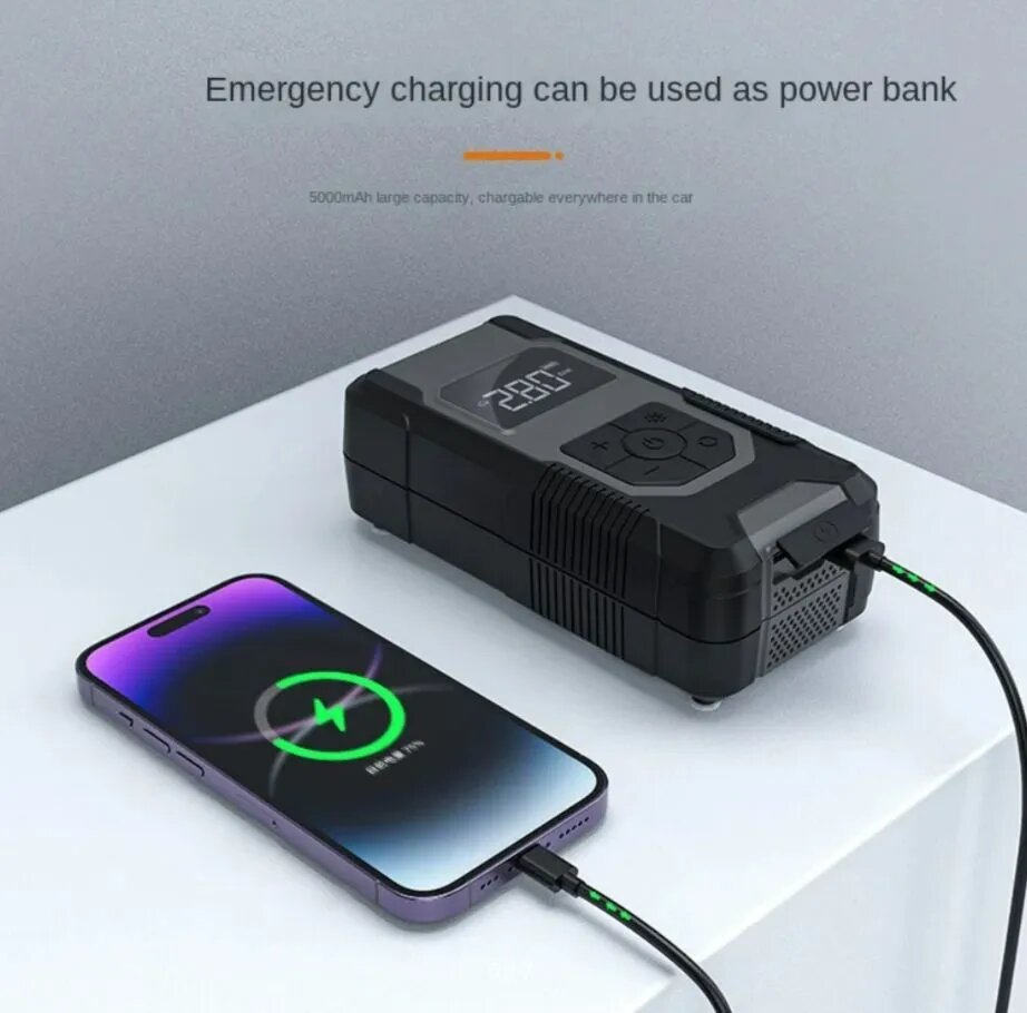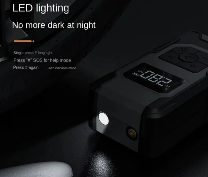 Компрессор автомобильный, портативный, насос для авто, фонарь, powerbank интересное: