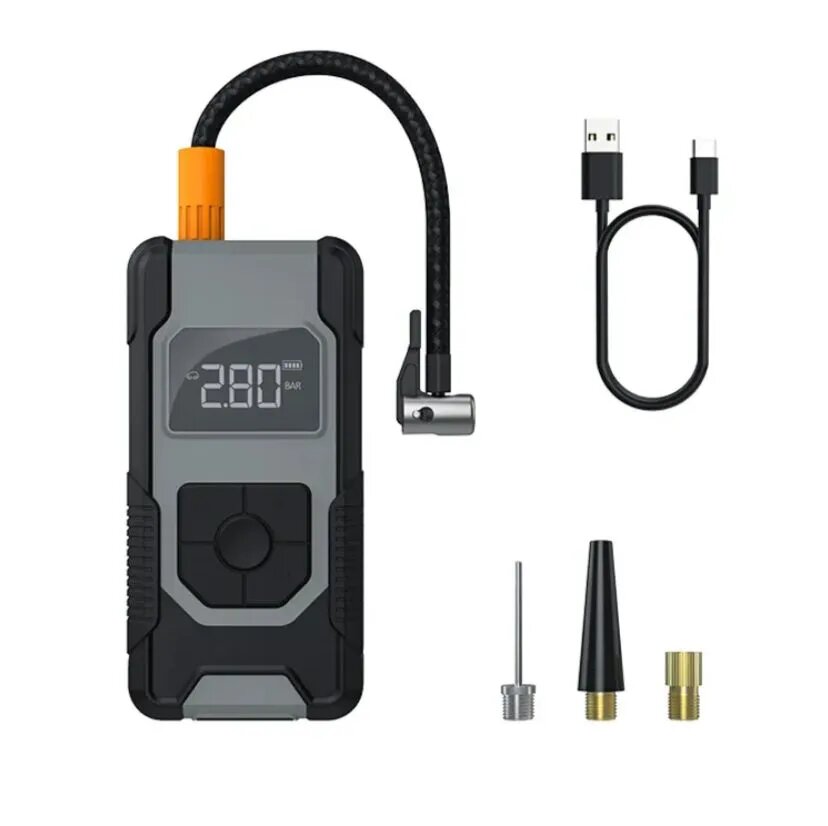 Компрессор автомобильный беспроводной, насос с цифровым манометром для велосипеда, мяча, бассейна, батута