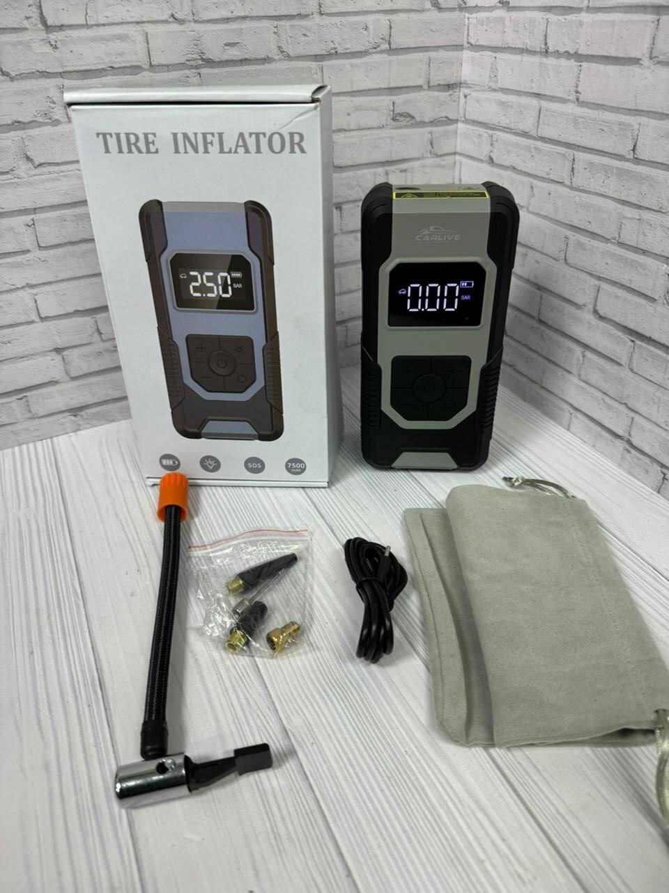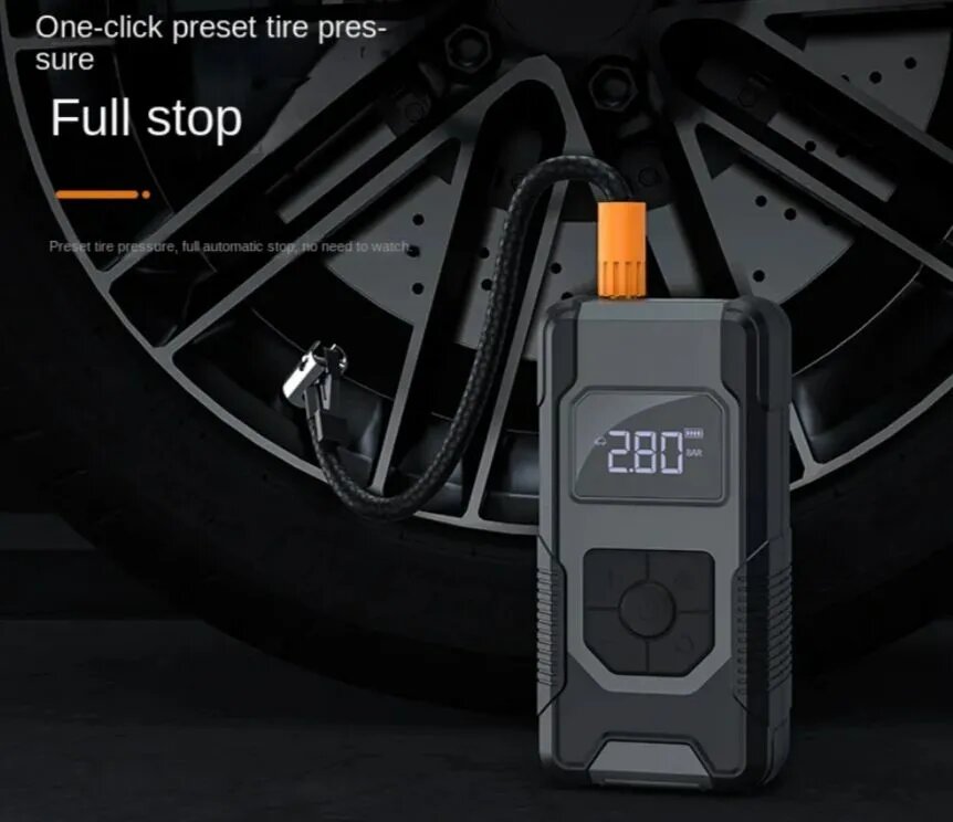 Компрессор автомобильный беспроводной, аккумуляторный, насос для автомобиля с цифровым манометром, с фонариком, насос для авто, велосипеда, мяча, бассейна