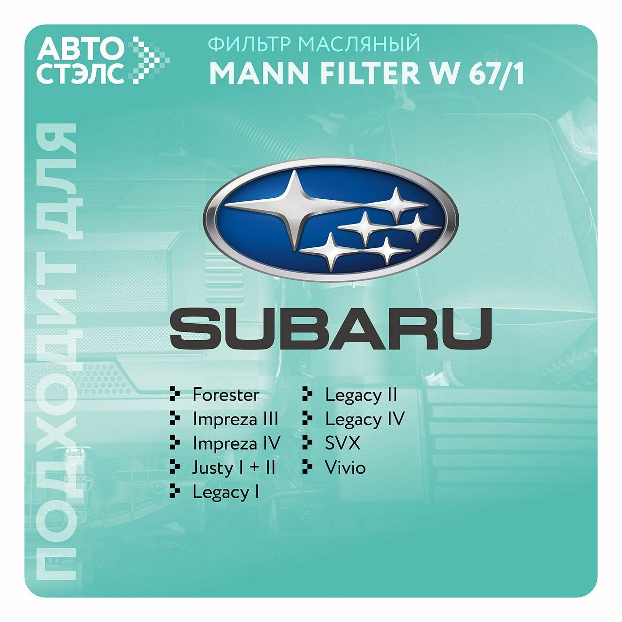 Купить Фильтр масляный масляный фильтр MANN FILTER / OPEL NISSAN MAZDA MITSUBISHI KIA. OEM: W67/1. Киа Опел Рено Мазда Ниссан
