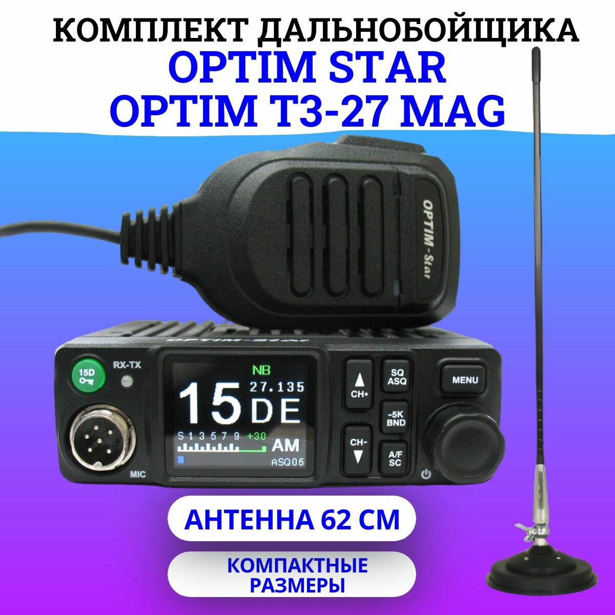 Комплект: Радиостанция автомобильная Optim Star+Антенна T3-27 MAG интересное: