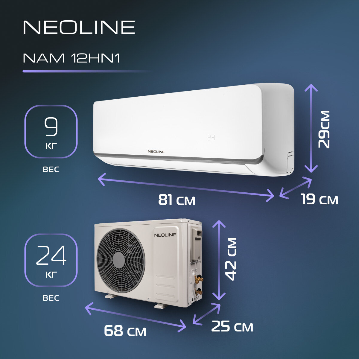 Сплит-система настенная Neoline NAM-09HN1 825 Вт 26 м2 с пультом