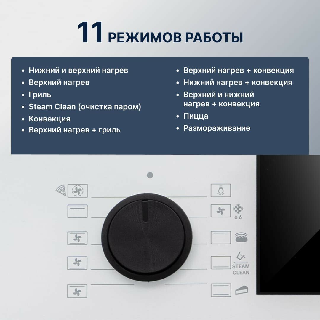 | Режимы нагрева | большой гриль, верхний нагрев, верхний нагрев + конвекция, верхний нагрев + нижний нагрев, гриль + конвекция, конвекция, нижний нагрев, нижний нагрев + конвекция |