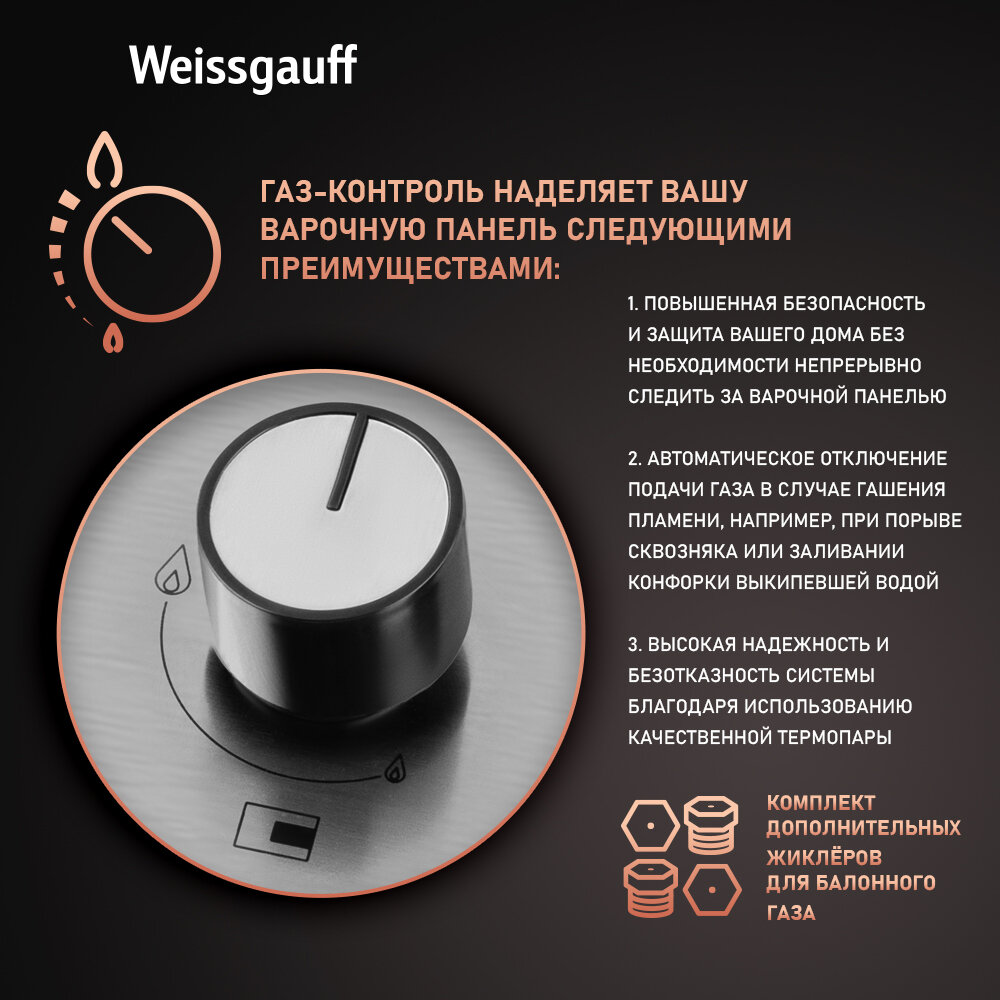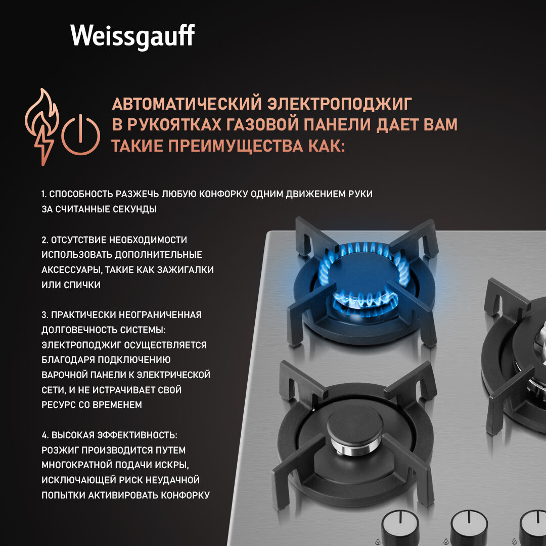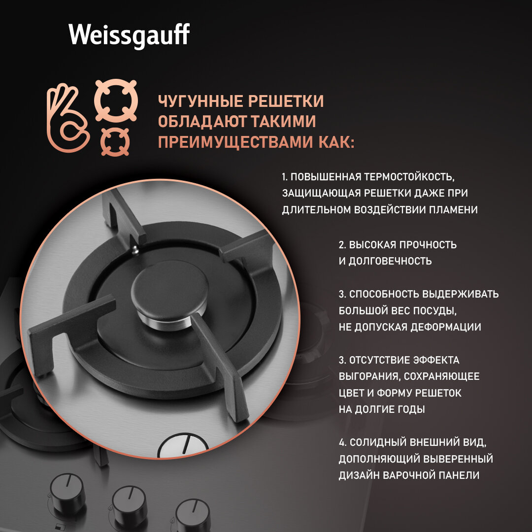 Газовая панель Weissgauff HGG 431 XRV WOK-конфорка, 3 года гарантии, автоматический электроподжиг, Рукоятки Hi-Tech, газ-контроль интересное:
