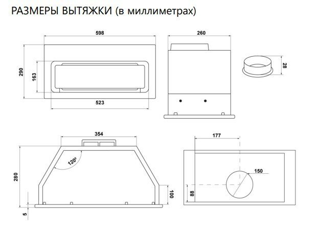 Вытяжка встраиваемая MAUNFELD TRAPEZE 603EM Black
