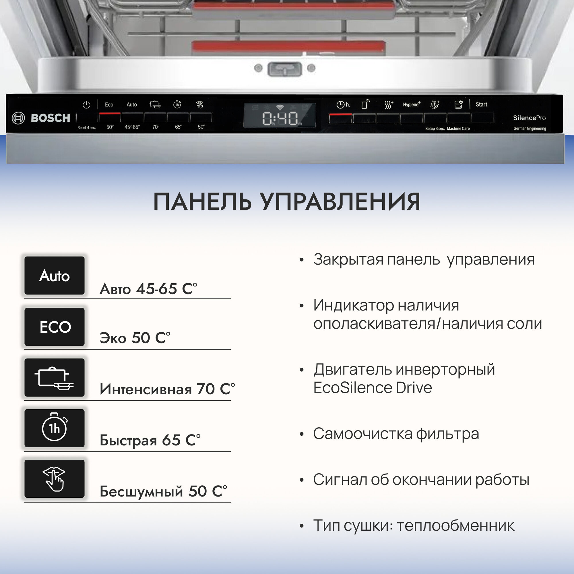 | Программы | автоматическая / быстрая / гигиеническая / интенсивная / ночная / экономичная |