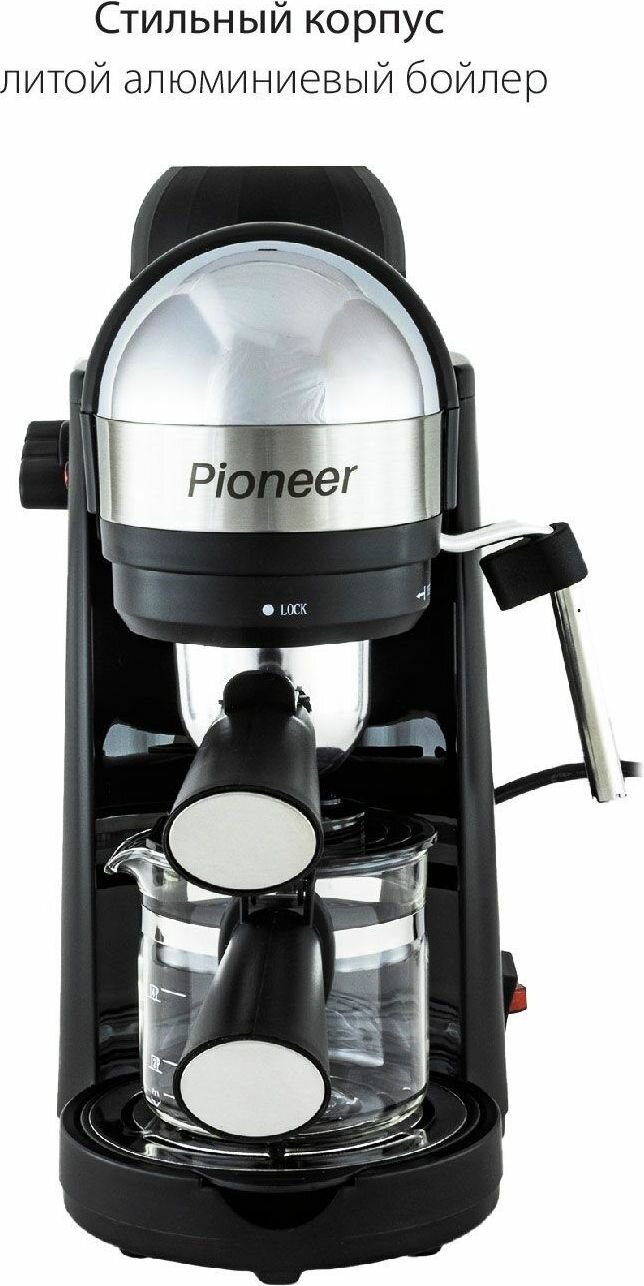 Кофеварка рожковая Pioneer CM106P с капучинатором и фильтром, на 4 порции, бойлер 240 мл, защита от перегрева