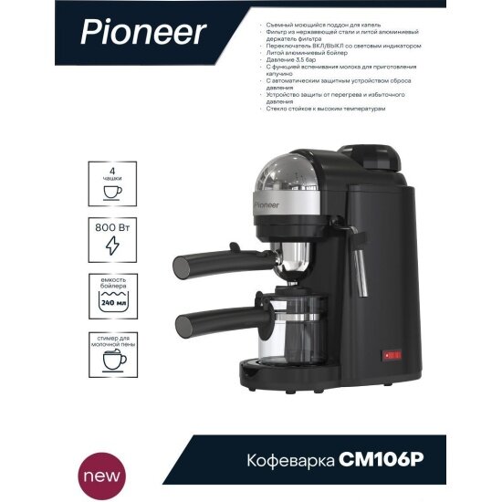 Кофеварка рожковая PIONEER CM106P 800Вт, 240мл, пластик интересное: