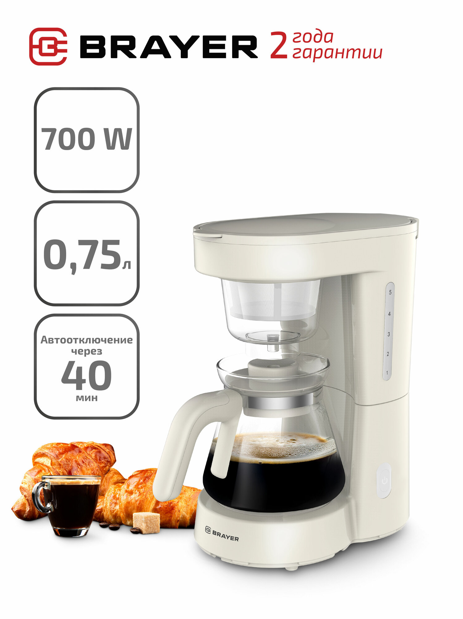 Кофеварка капельная BRAYER BR1123YE, 700 Вт, 0,75 л, цвет бежевый