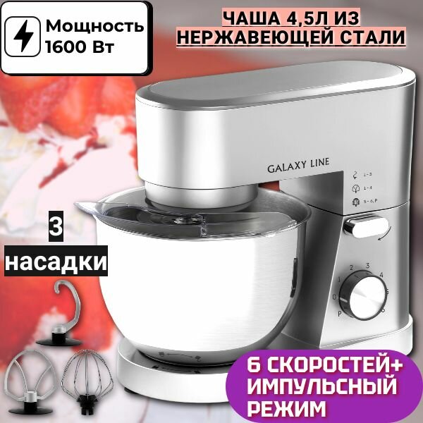Планетарный миксер GALAXY LINE GL2236, миксер кухонный, 3 насадки