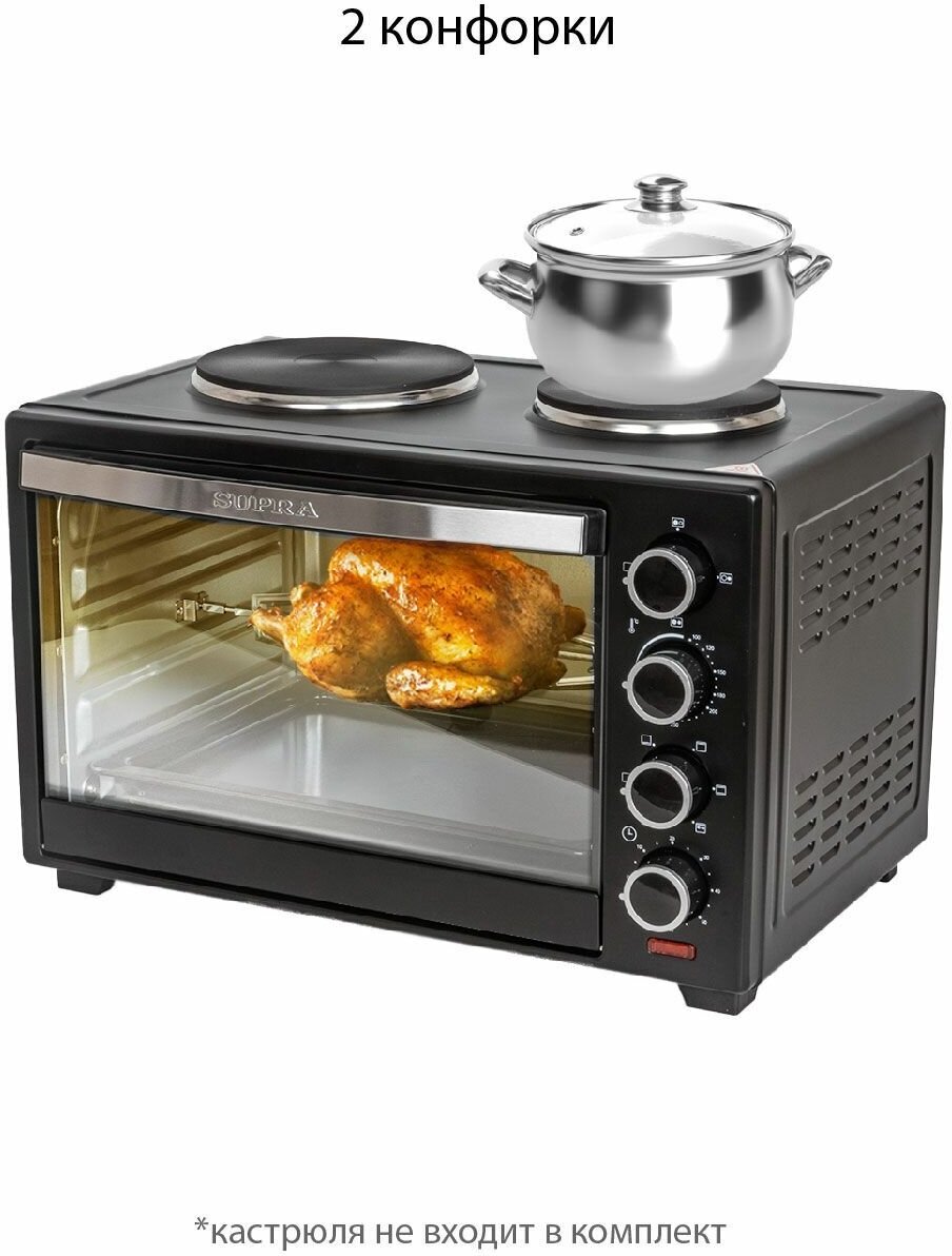 Печь электрическая SUPRA 42 литра с грилем, 2 конфорки, 6 режимов работы / мини-печь с вертелом, таймер 60 минут, 1600 Вт