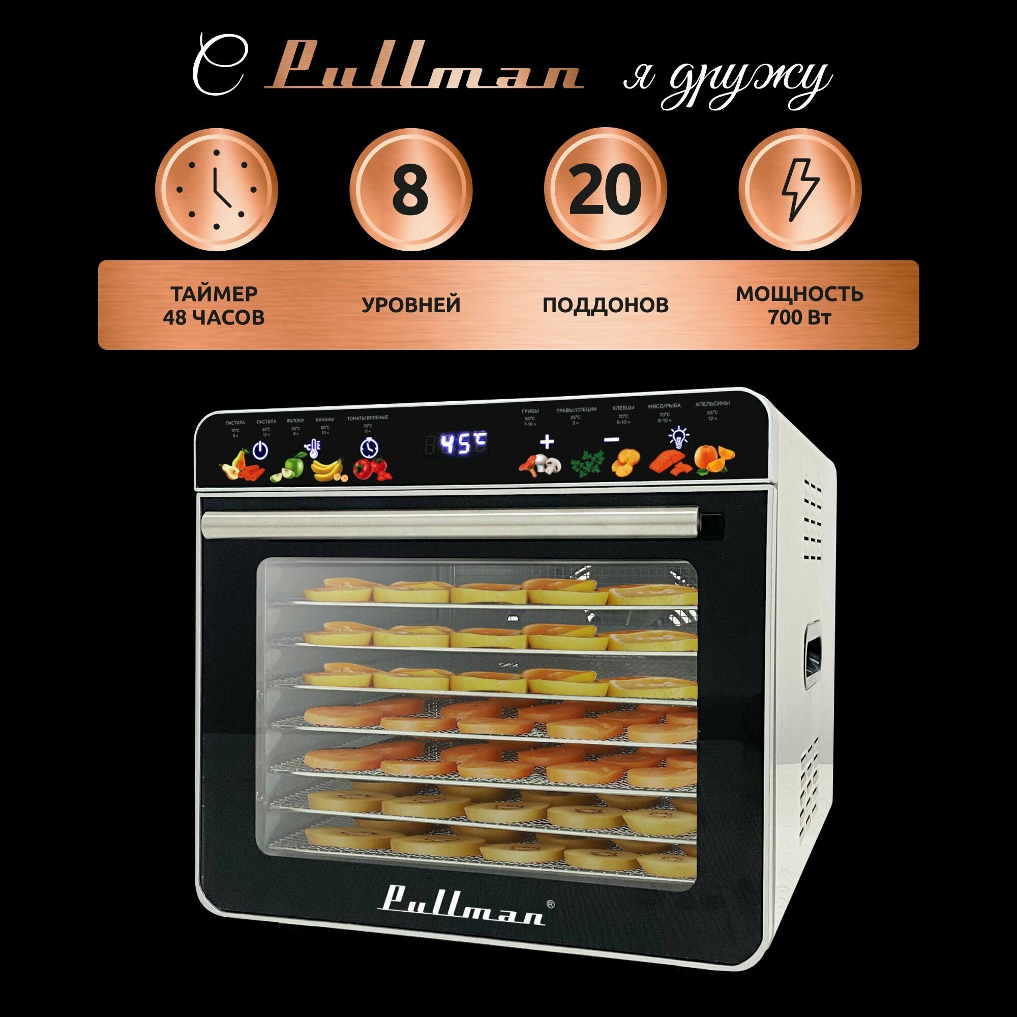 Дегидратор Pullman PL-1106, 8 уровней, 20 поддонов, 700 Вт/дегидратор для овощей, зелени, фруктов, грибов, мяса/ электросушка для пастилы