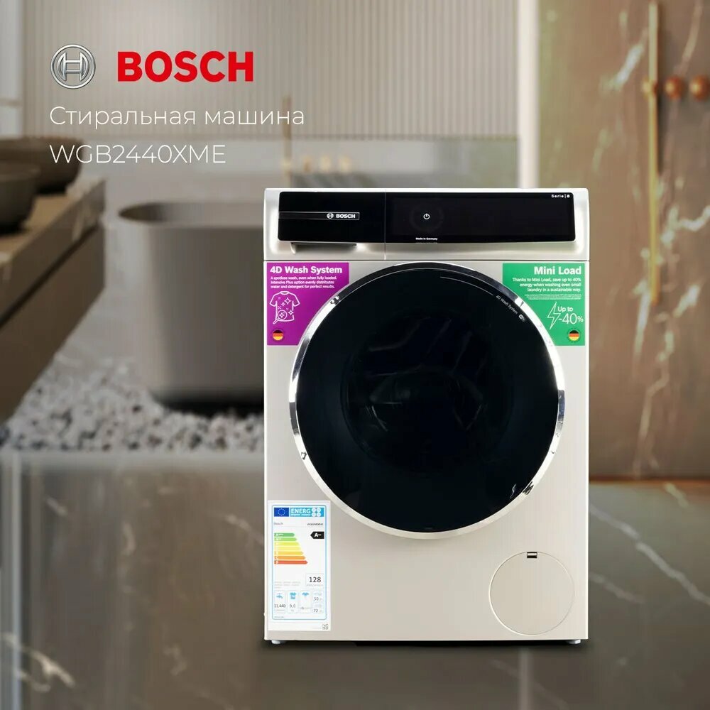 Стиральная машина Bosch Serie 8 WGB24400ME с фронтальной загрузкой 9 кг, 1400 об/мин