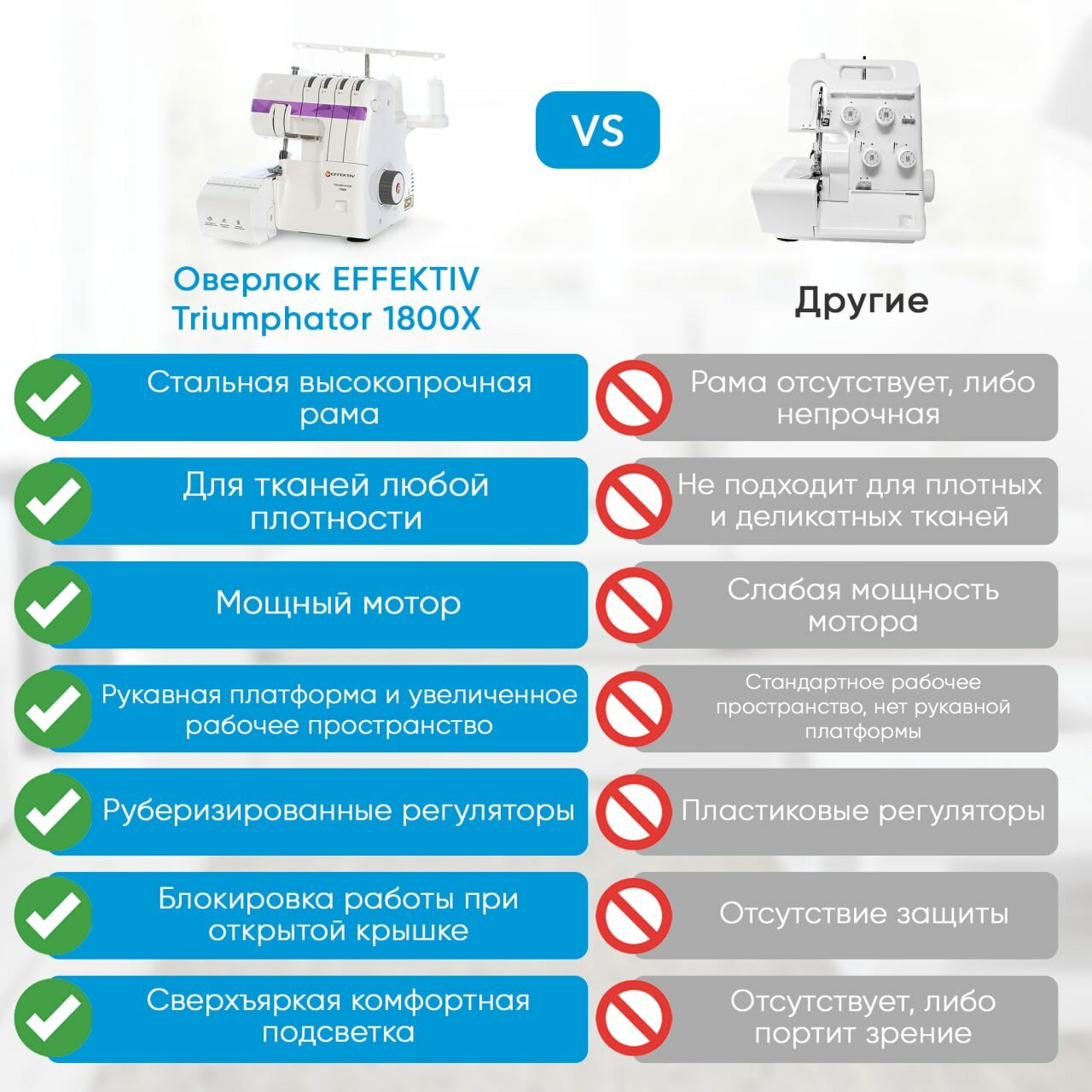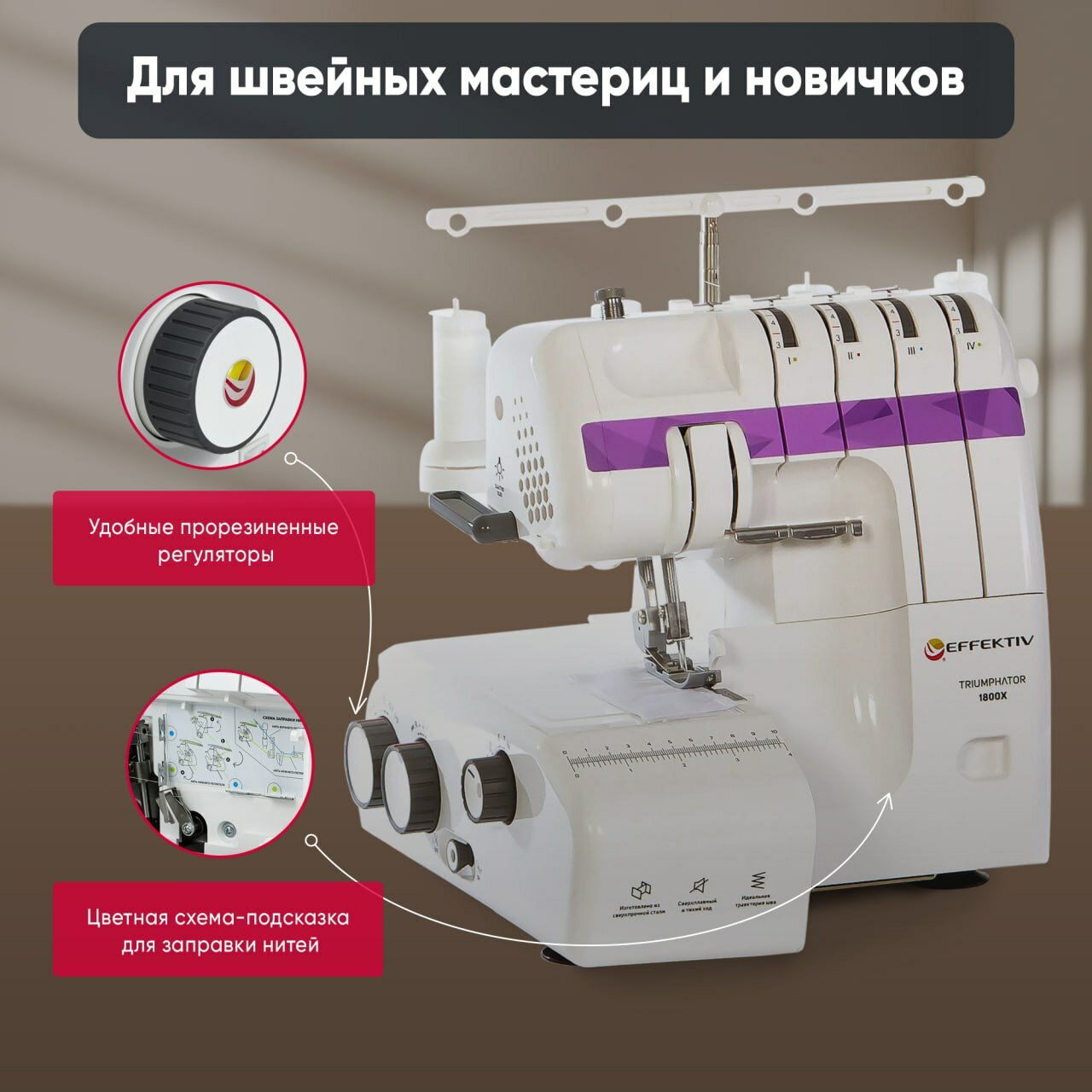 Оверлок TRIUMPHATOR 1800X (фиолетовый) 2-3-4 ниточный с функцией автоматической заправки нитей интересное: