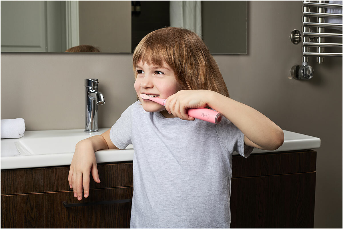 Умная детская ультразвуковая зубная щетка Sibling Powerbrush-QP розовая; электрическая щетка для девочки