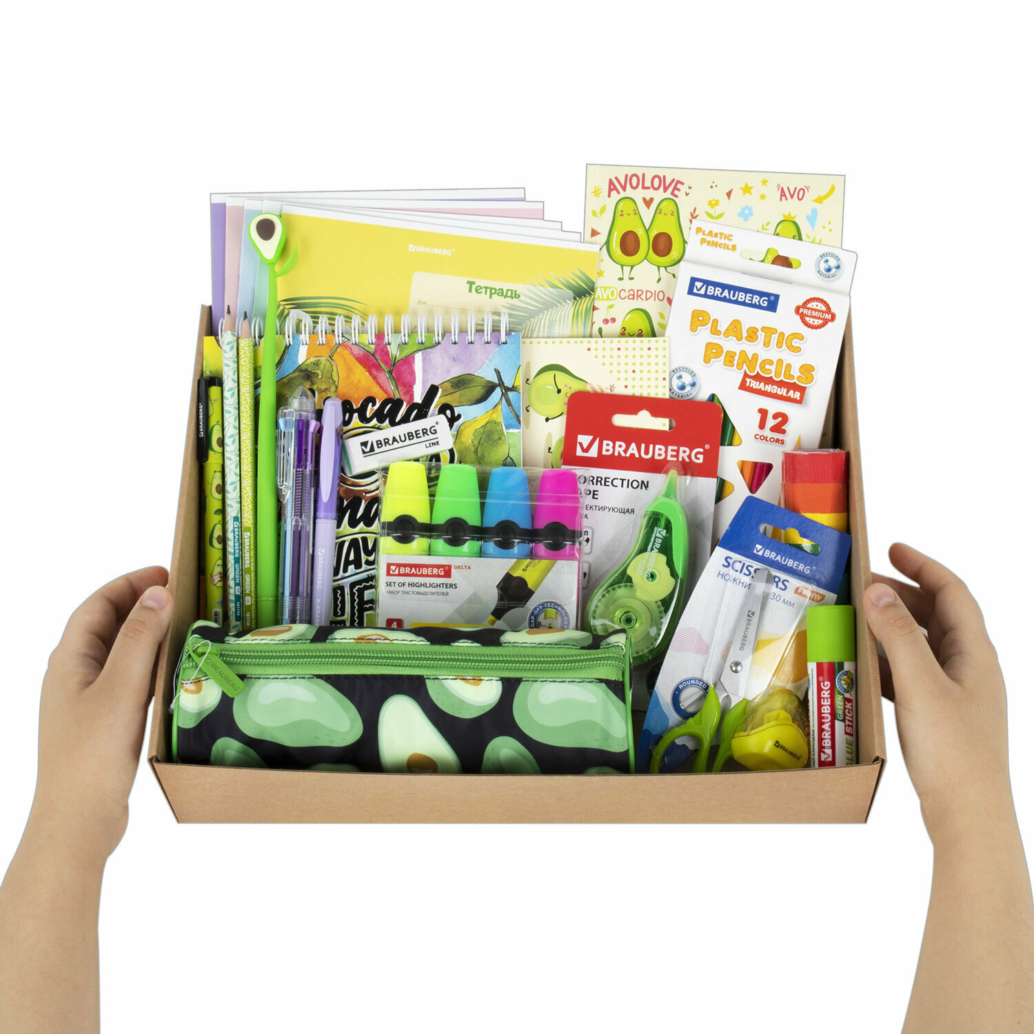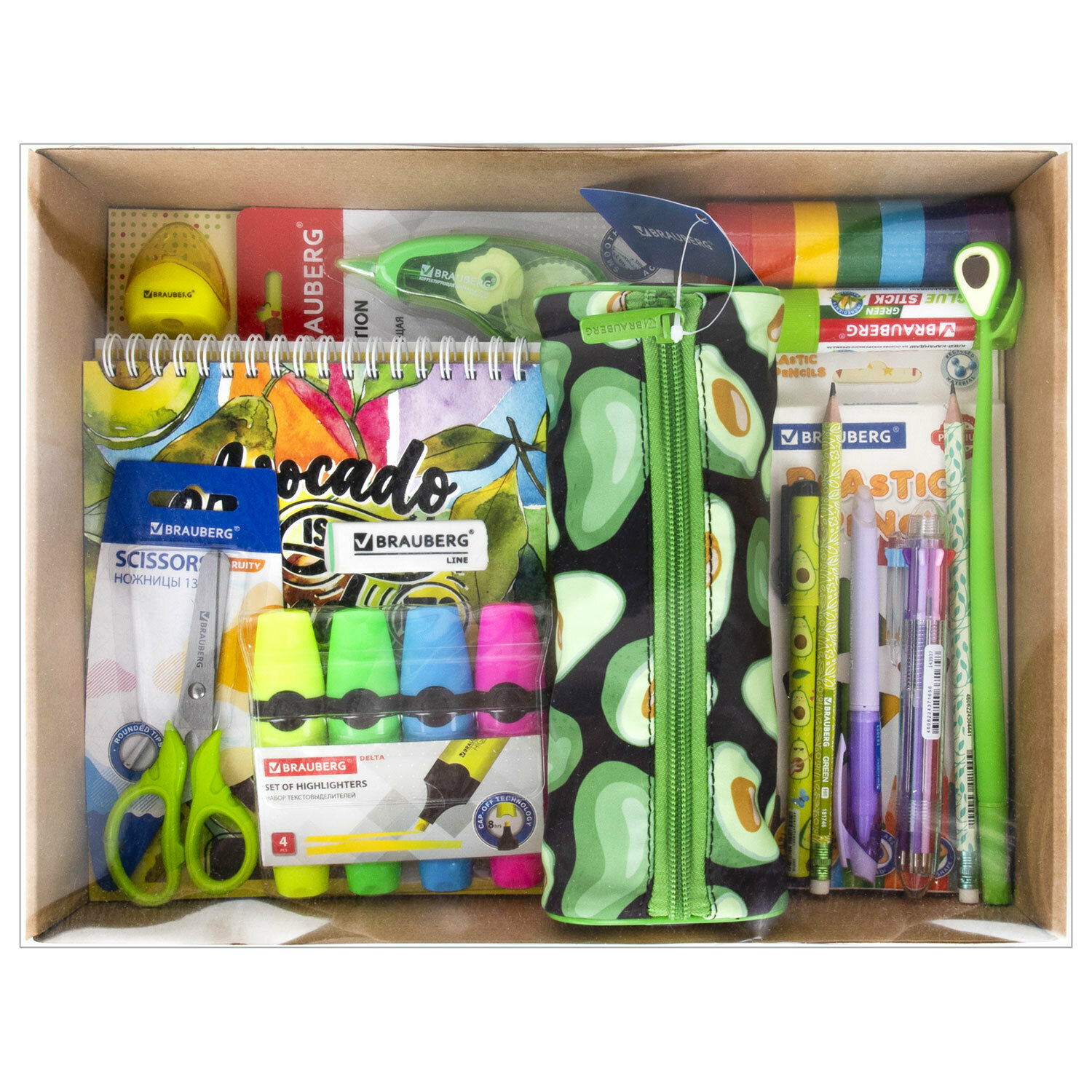 Подарочный набор канцелярии для школьника Brauberg Avocado, 43 предмета, универсальный, 18 наименований, 880951