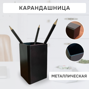 Подставка стакан для канцелярии Attache, настольный, металлический, для ручек и карандашей, 8x8x10 см