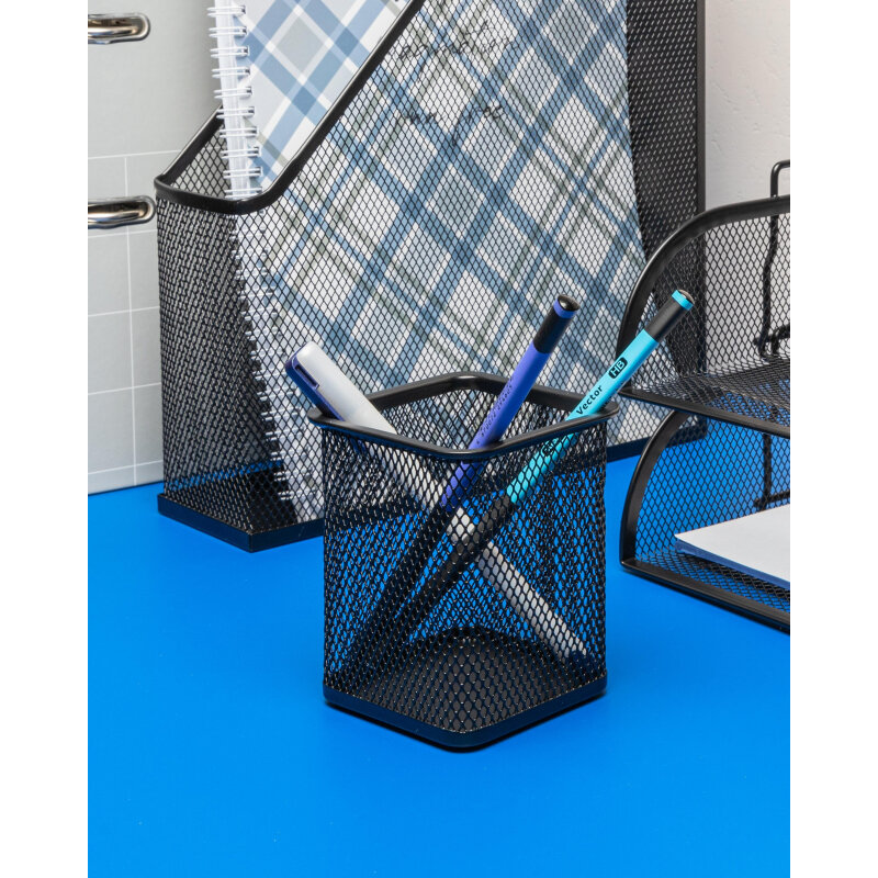 Attache Подставка для письменных принадлежностей квадрат 80х80мм, высота 98мм, металлическая сетка чёрная