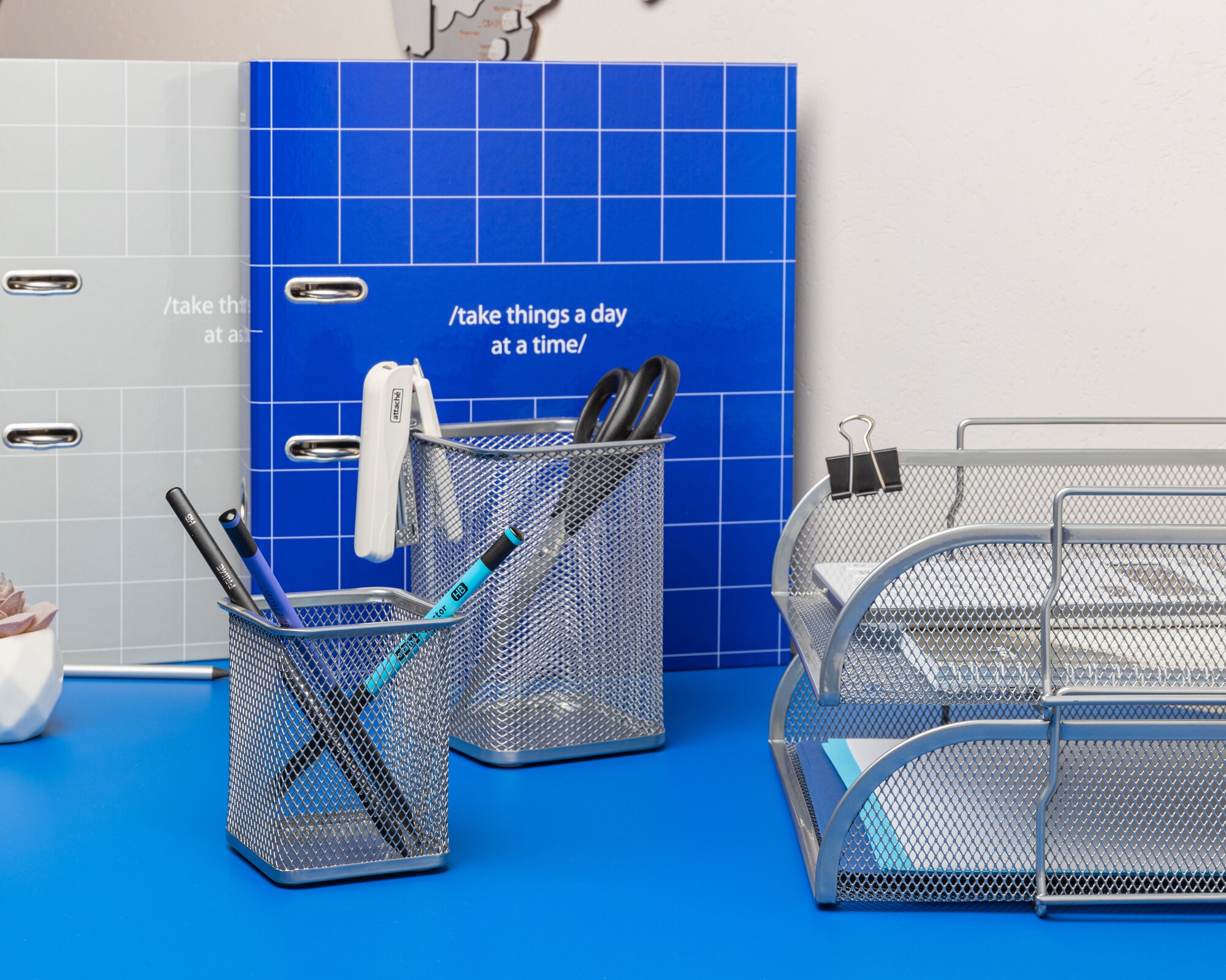Attache Подставка для письменных принадлежностей квадрат 80х80мм, высота 98мм, металлическая сетка чёрная