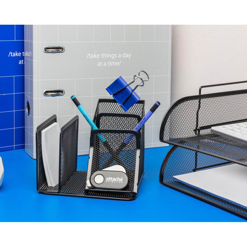Подставка для пишущих принадлежностей Attache, 4 отдел., металл.сетка черная