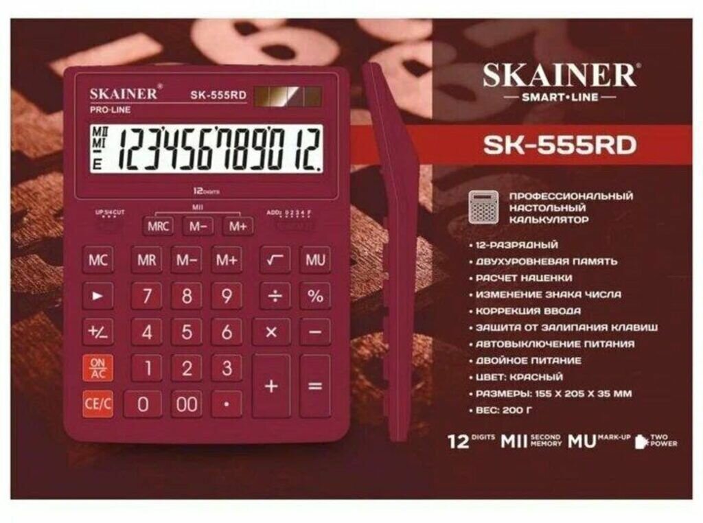 Калькулятор 12 разр. Skainer настольный двойное питание красный