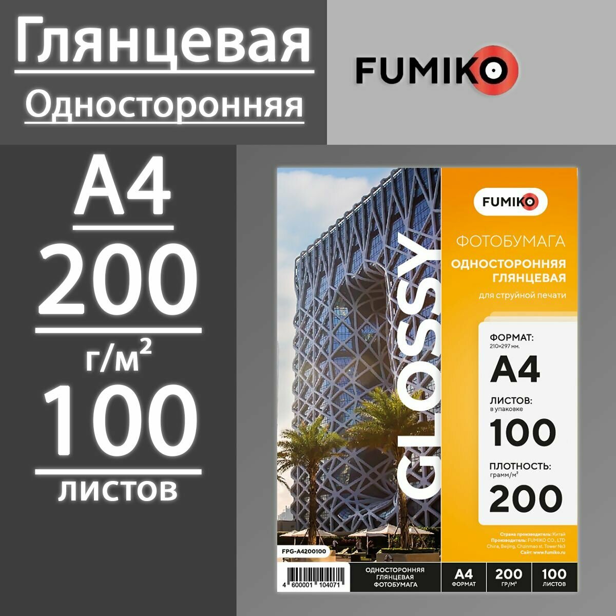Купить Фотобумага FUMIKO глянцевая односторонняя 200 г, А4, 100 листов