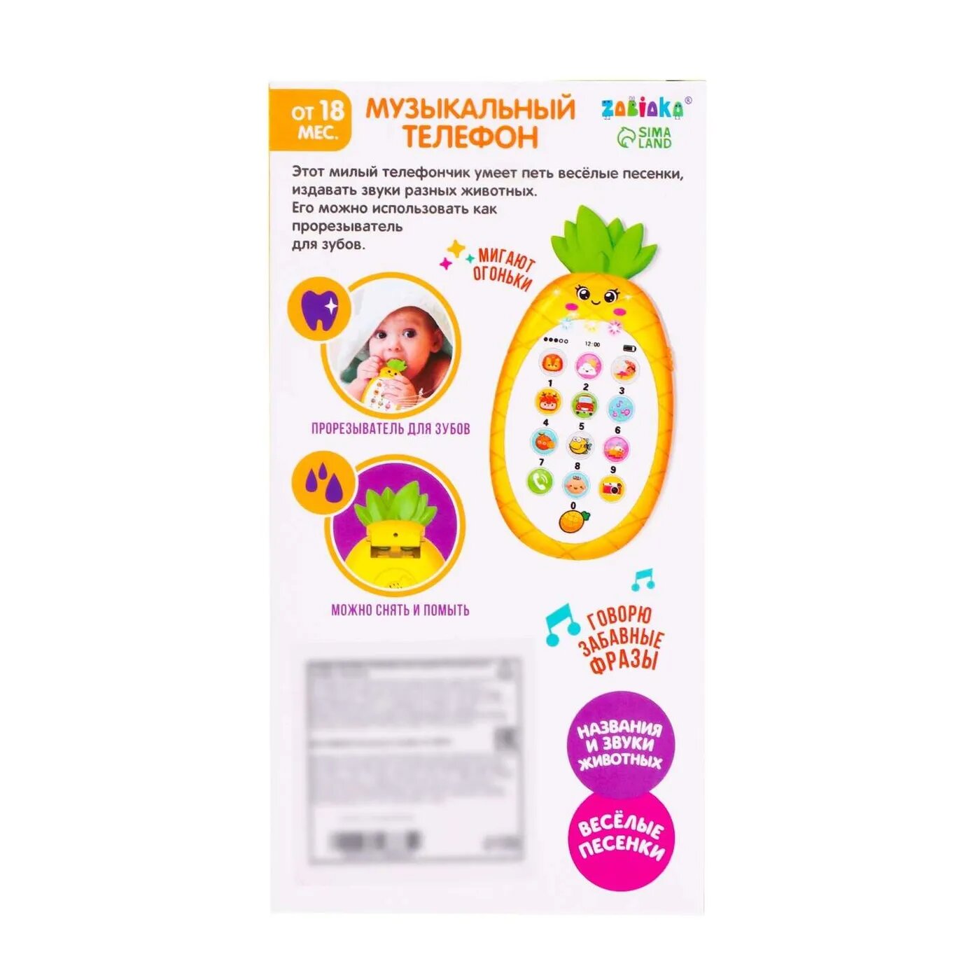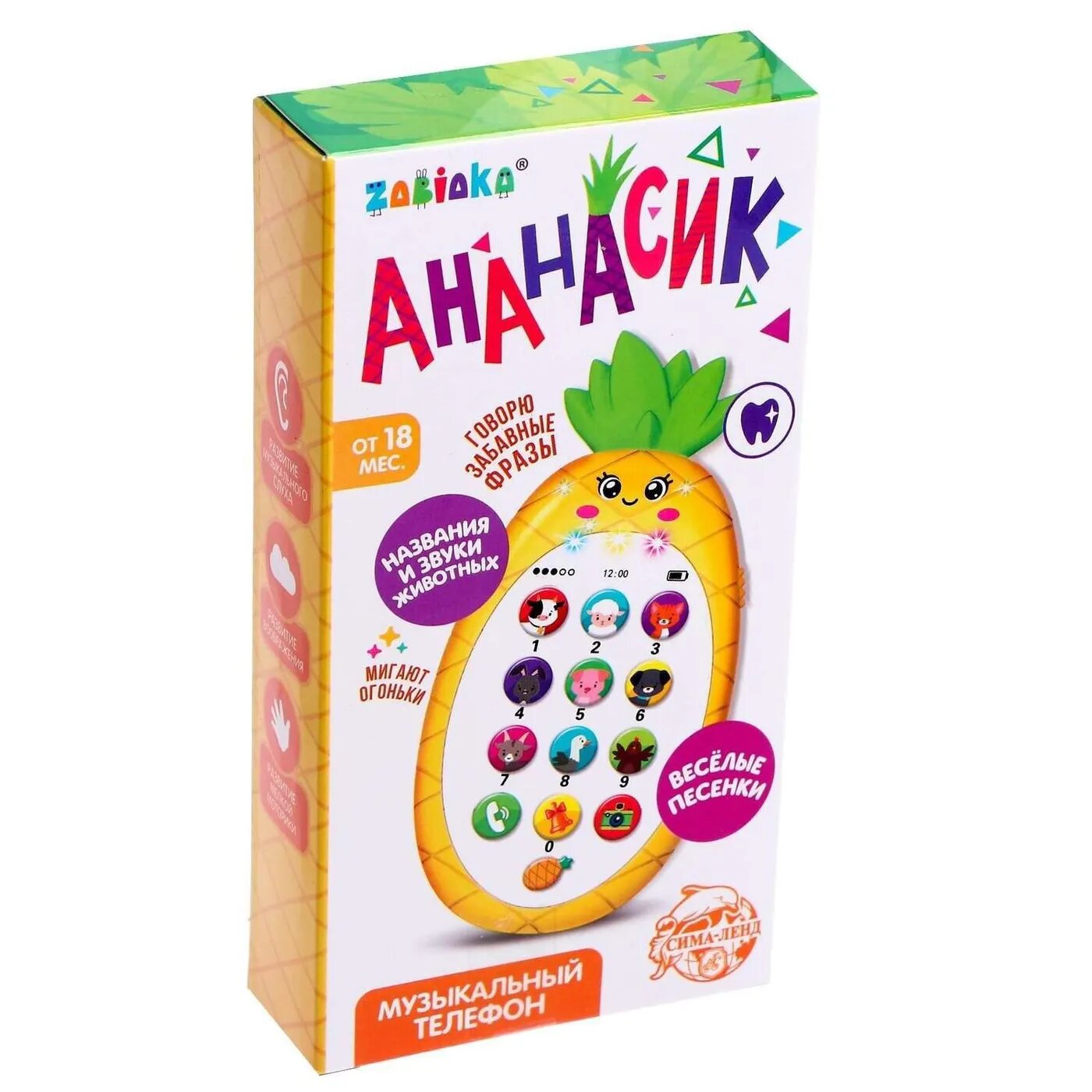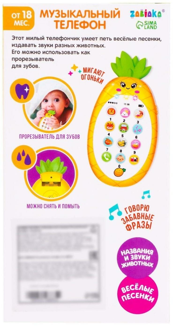 Развивающий музыкальный телефон ZABIAKA "Ананасик", со звуковыми и светящимися эффектами