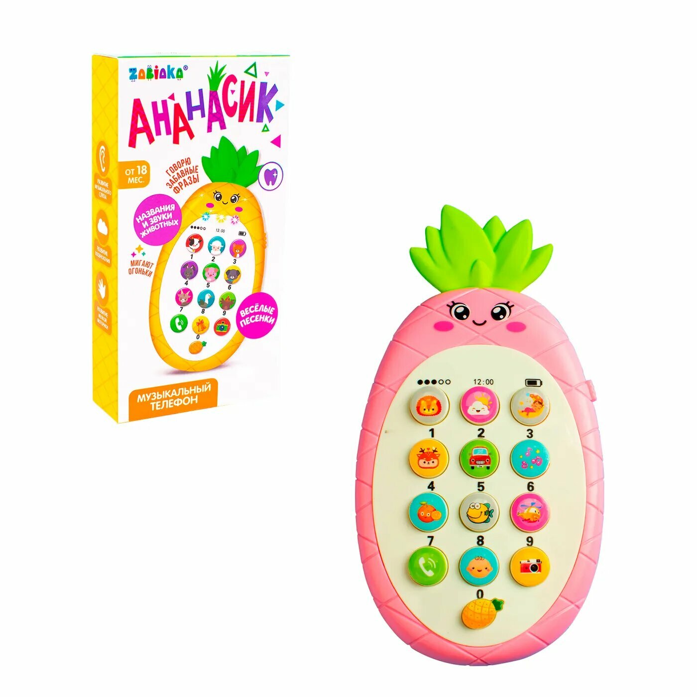 Купить Музыкальный телефон Ананасик, свет, звук
