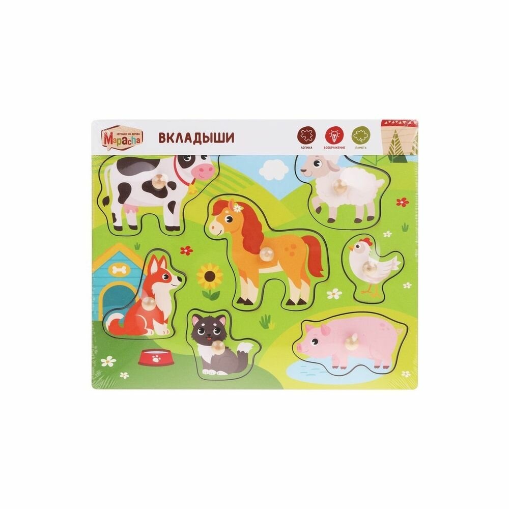 Сортер монтессори деревянные вкладыши для малышей Ферма Mapacha интересное: