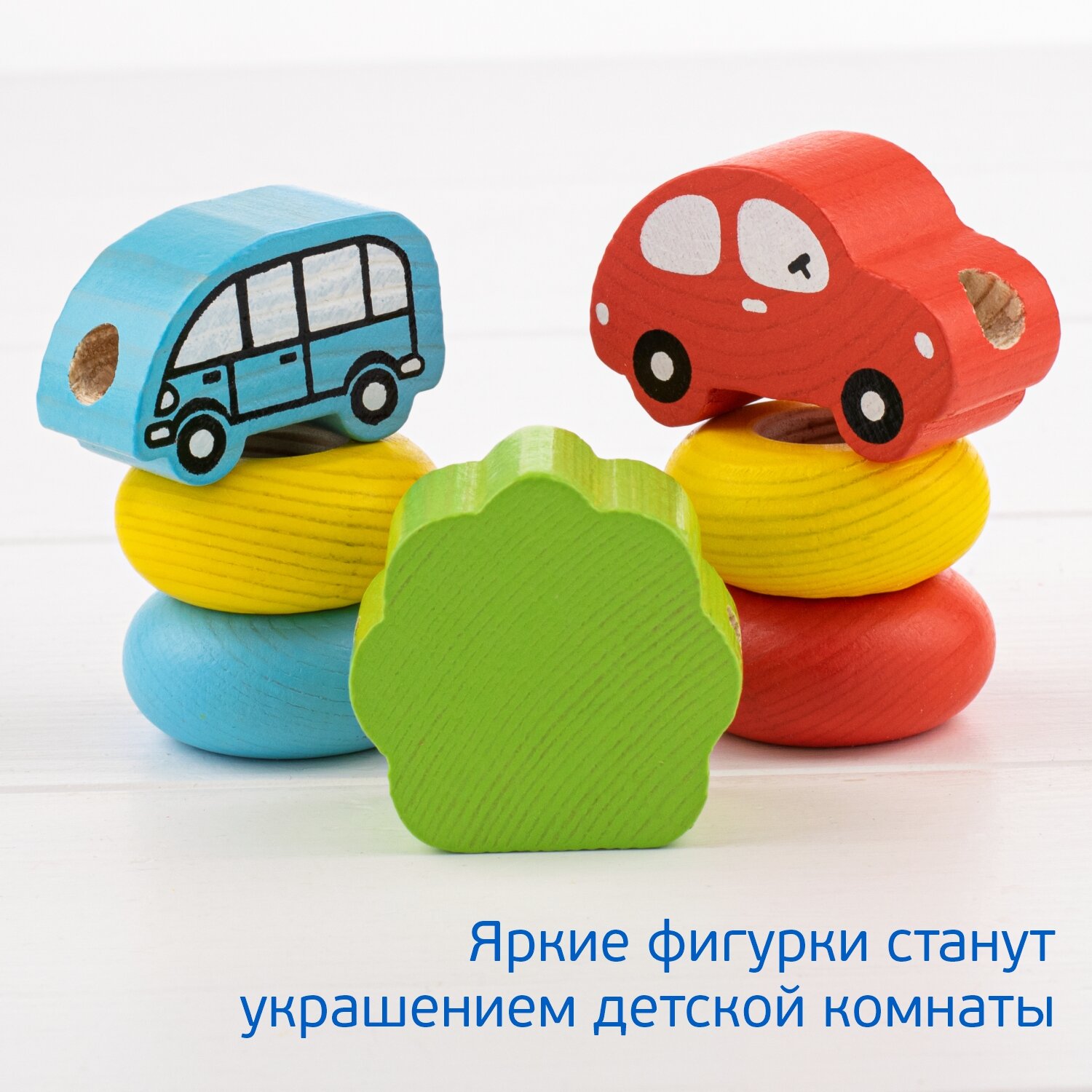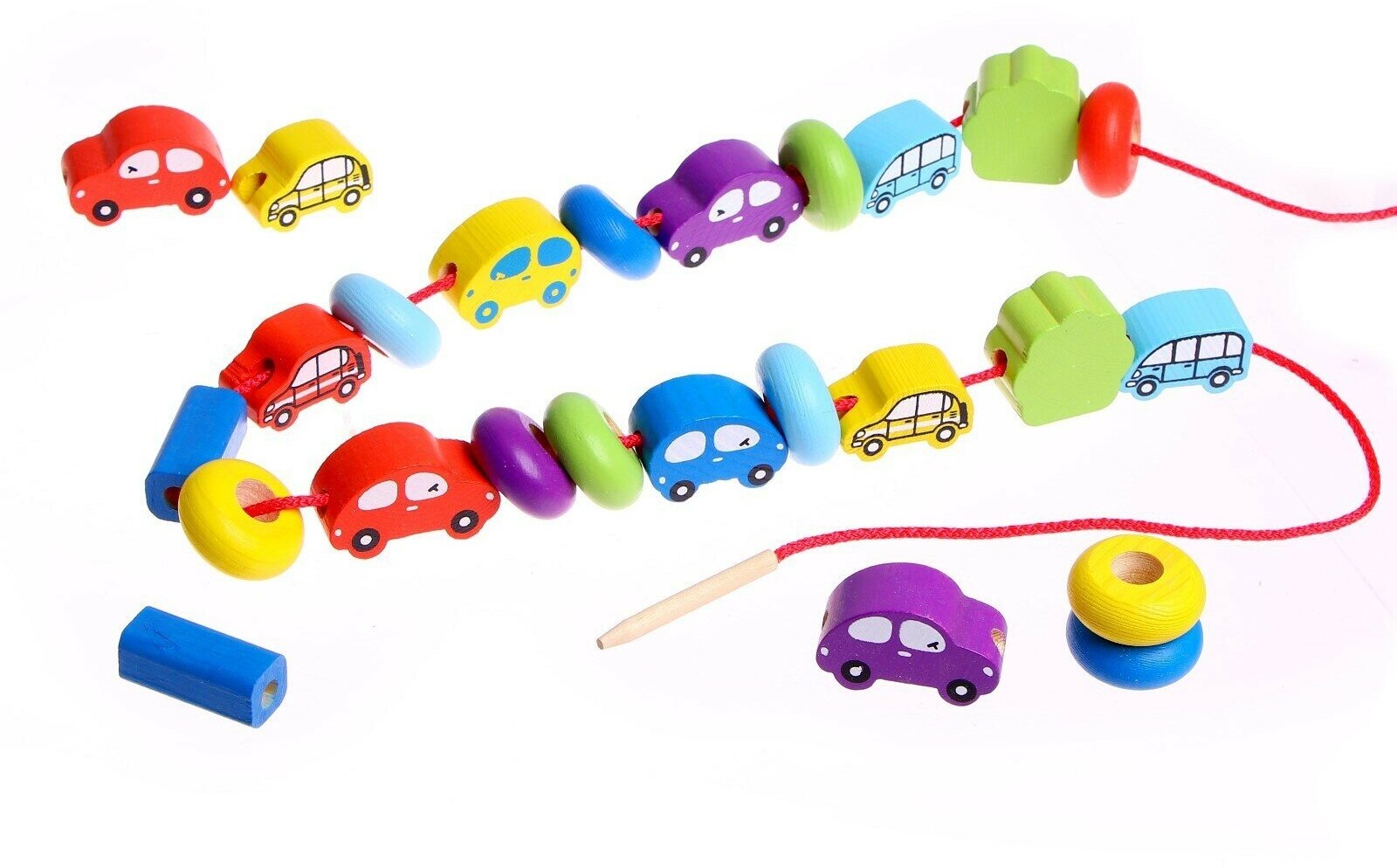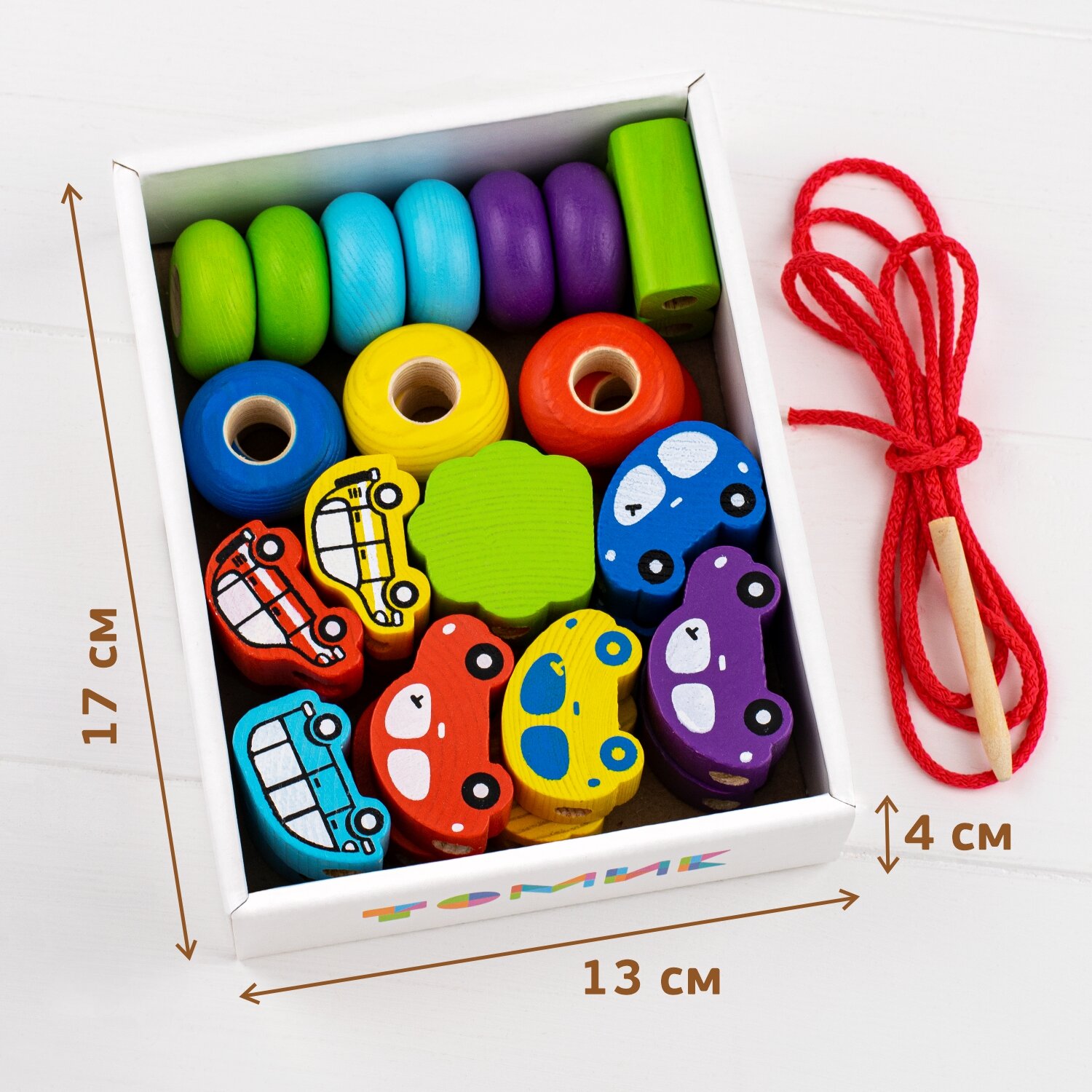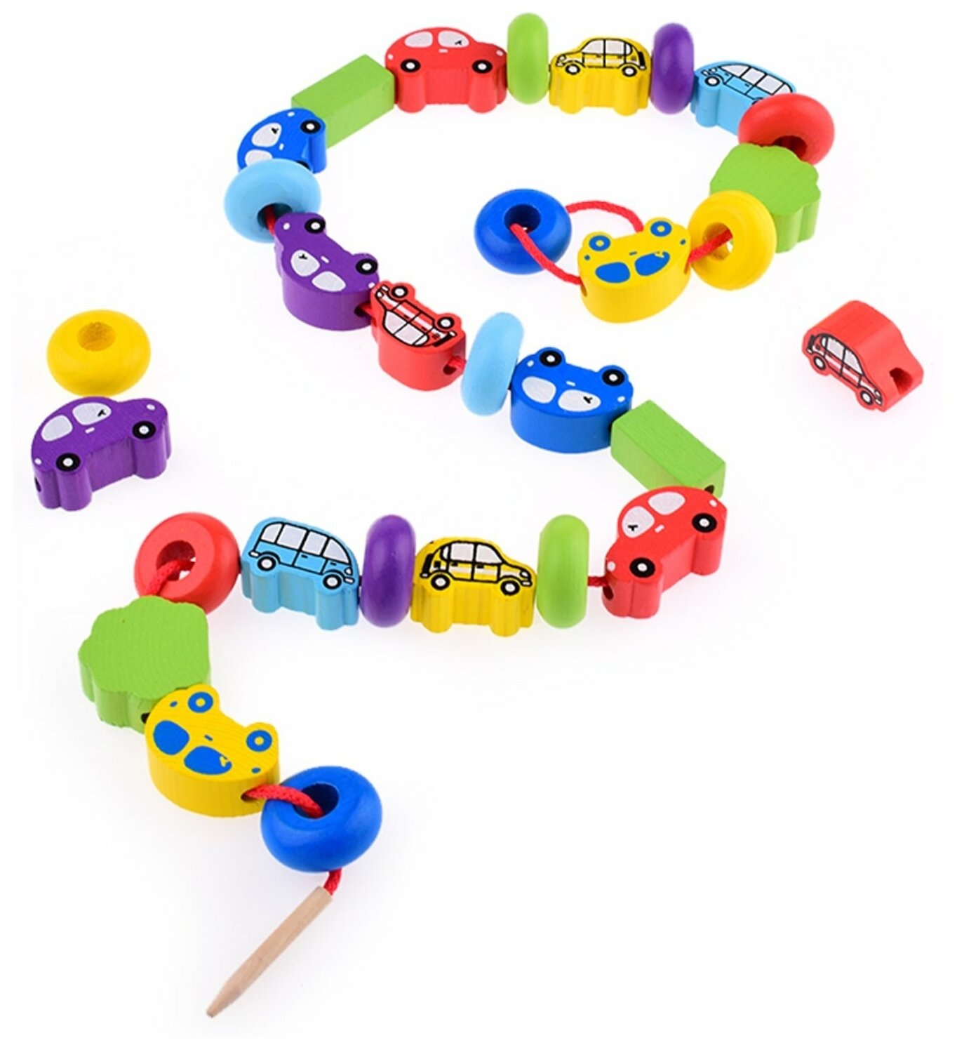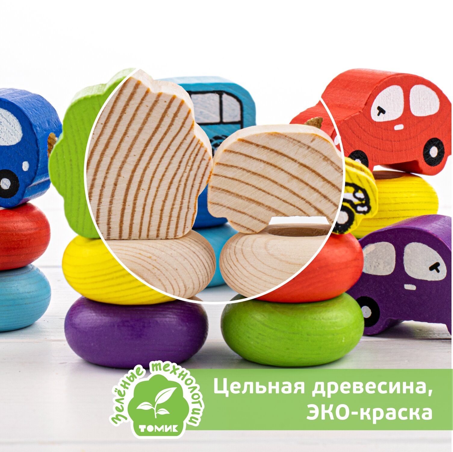 Развивающая игра-шнуровка Бусы "Транспорт", деревянная игрушка для развития мелкой моторики и навыка счета, 31 деталь