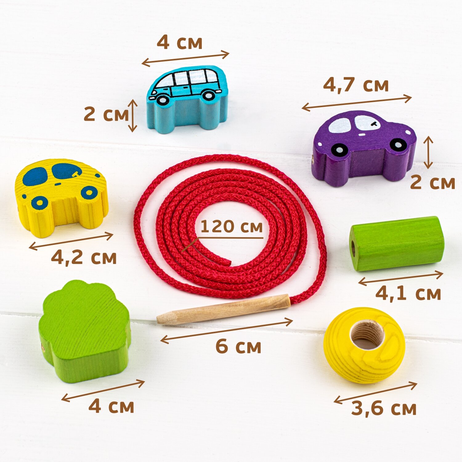 | Комплектация | 15 деревянных фигур, деревянная иголка со шнурком |