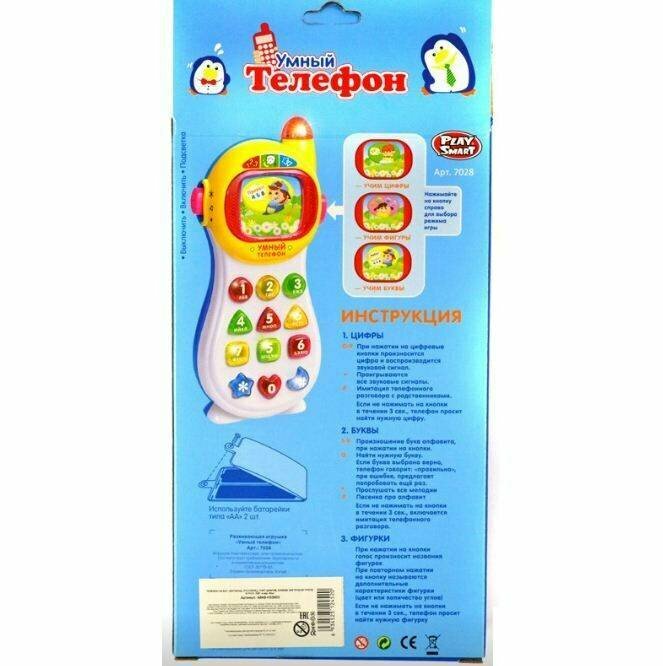Телефон обучающий на батарейках (свет, звук) на русском 7028, игрушка (в асс) PlaySmart A848-H33002 интересное: